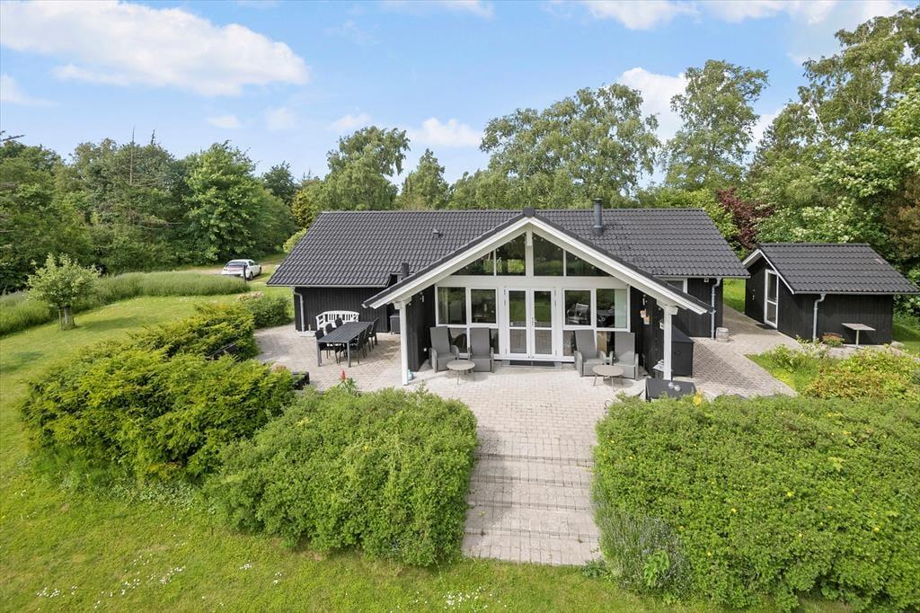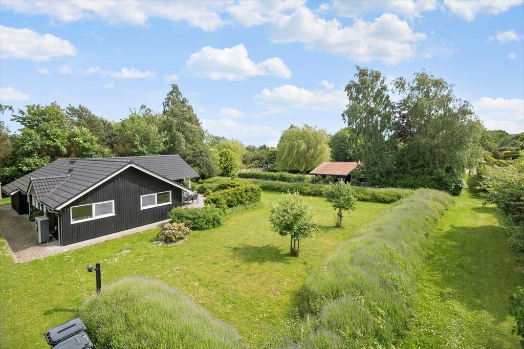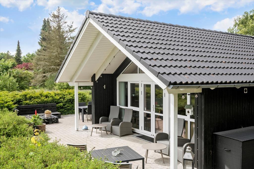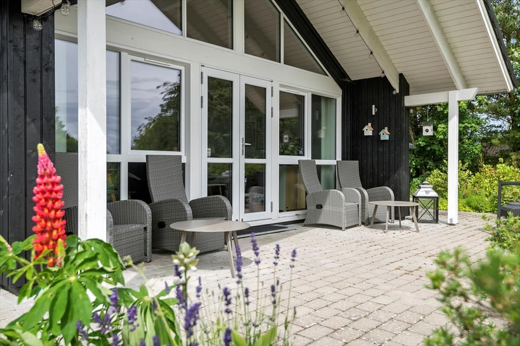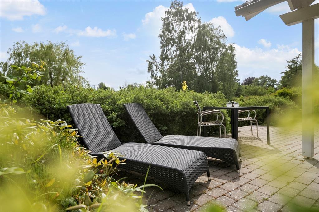 Sommerhuset er beliggende på en stor grund ca. 1.171m². Der er 2 terrasser og havemøbler og liggestole.