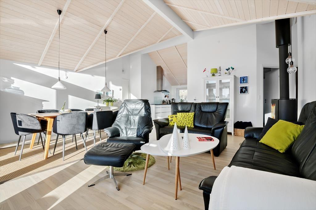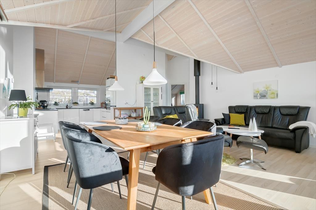 Dejligt køkken alrum ud i et med brændeovn og varmepumpe. Der er gulvvarme i hele huset.