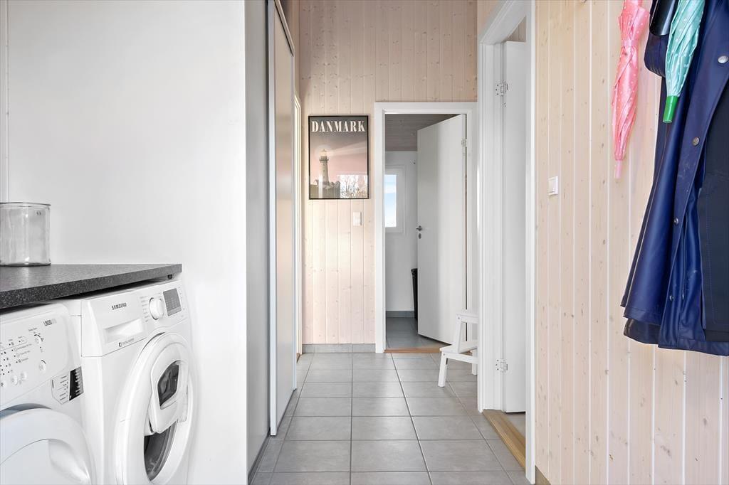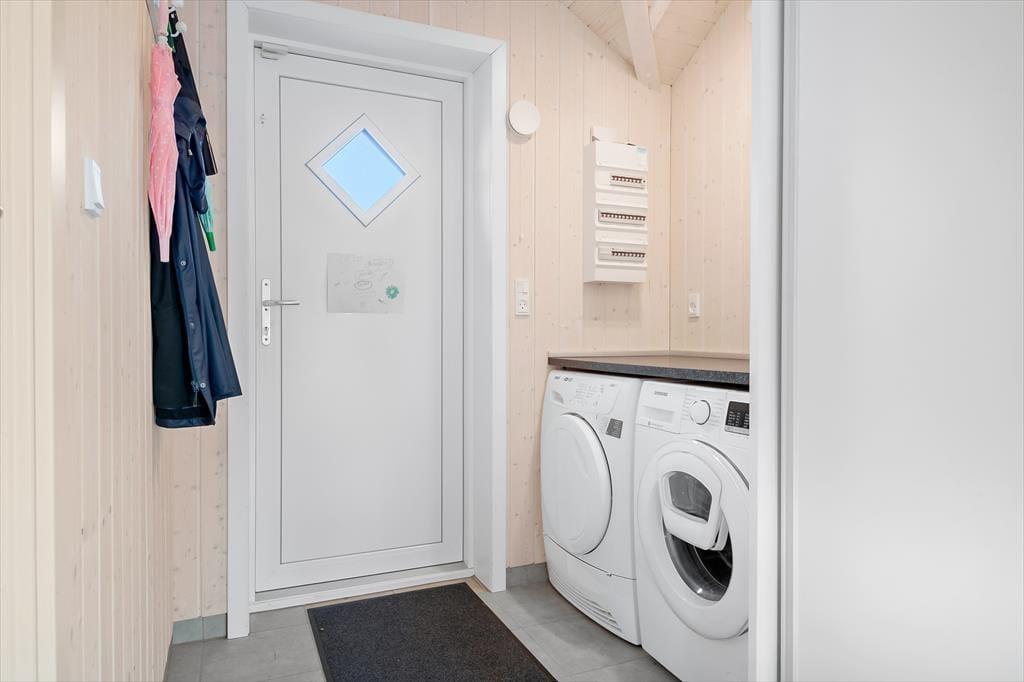 Entre med klinkegulv og vaskemaskine og tørretumbler.