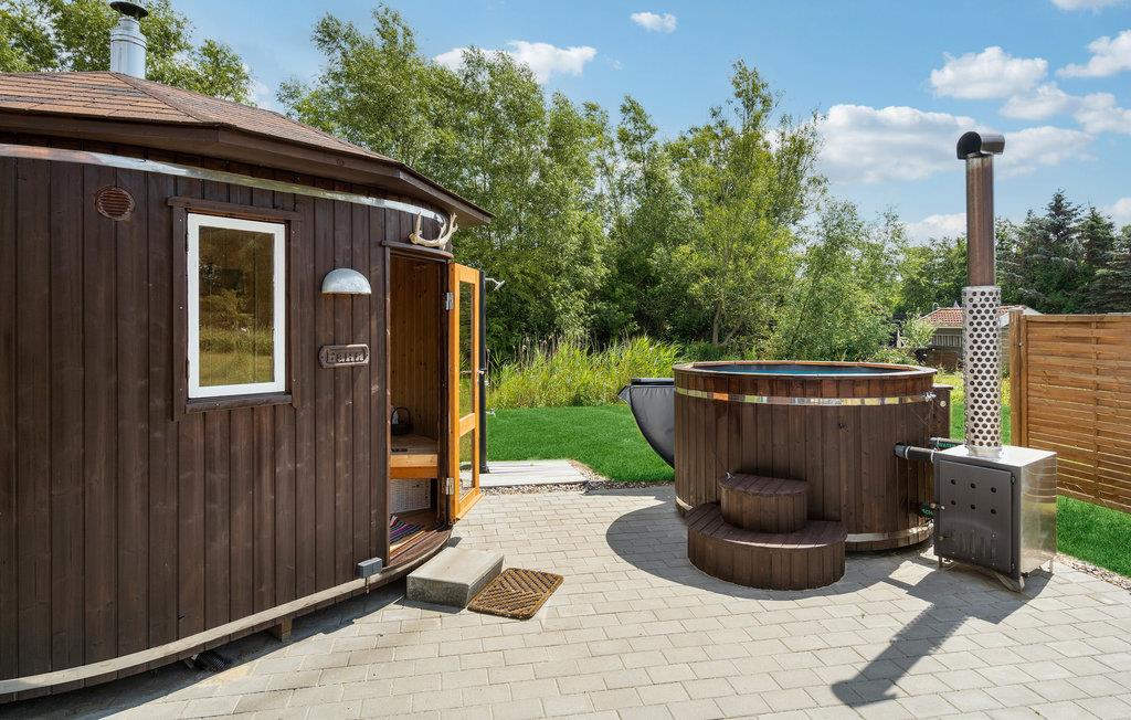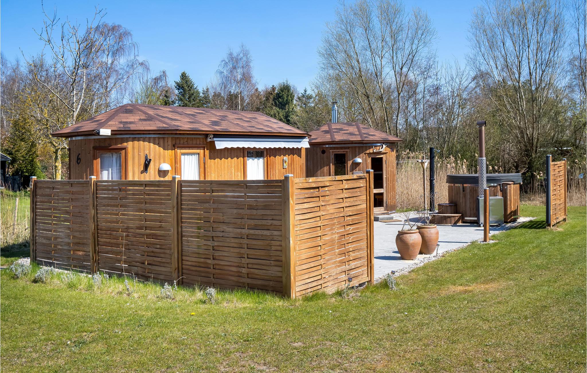 Hyggeligt træhus med sauna og vildmarksbad nær Bønsvig Strand i rolige omgivelser.