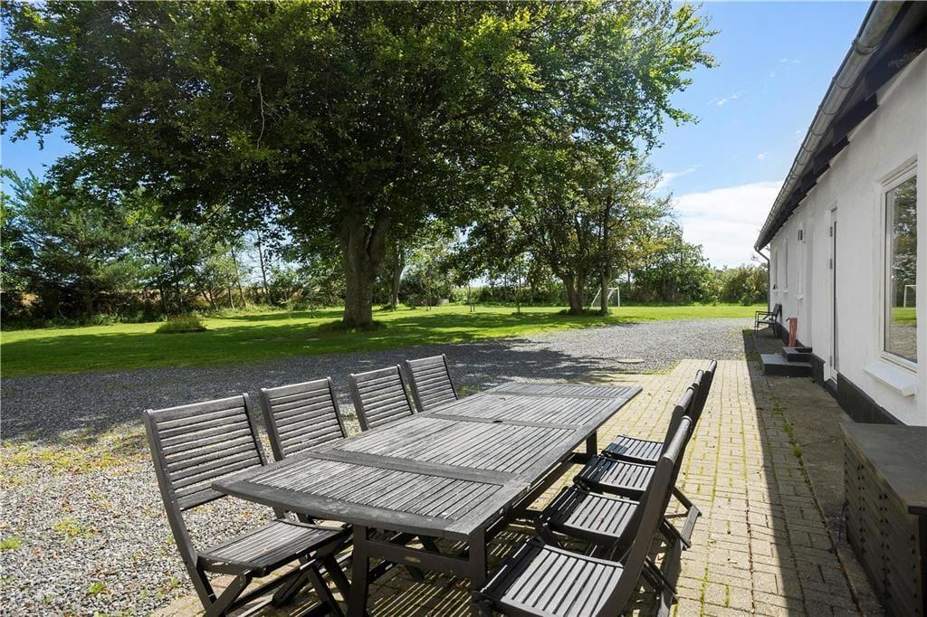 I får også rig mulighed for at brede jer ude i det fri, for grunden er på hele 3000 m2. På gårdspladsen står der havemøbler, men I kan også sætte jer på den sydvestvendte terrasse, som for øvrigt skærmes af en hæk, så her er der ofte både sol og læ. Fodboldkamp, havespil og leg kan foregå på græsplænen i haven, der på ægte landlig manér prydes af flotte træer og randbeplantning.