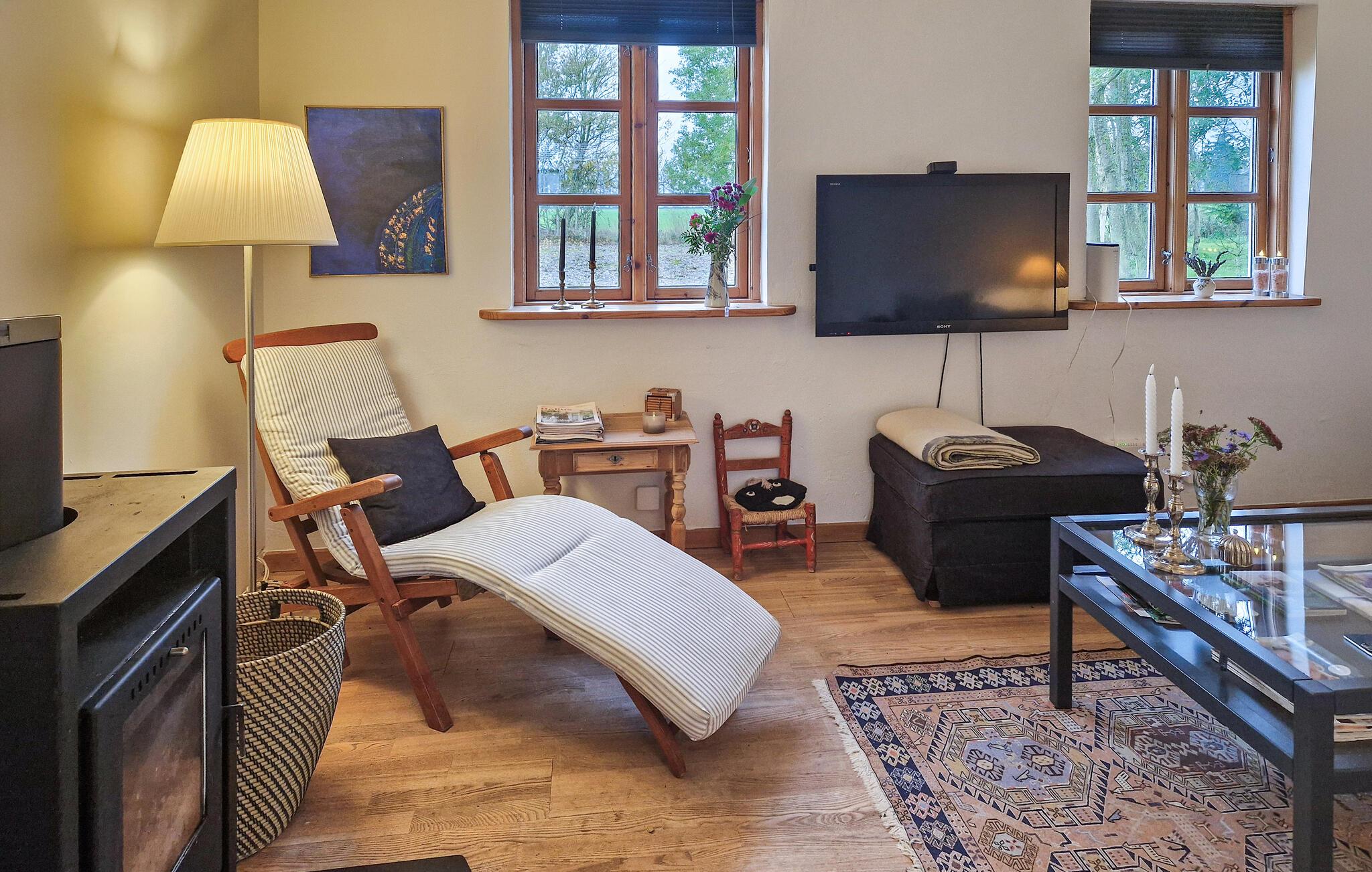 Træd ud i haven allerede om morgenen, nyd den vidunderlige udsigt over markerne, og oplev det rige dyreliv i naturen. Ejendommen byder på masser af plads udenfor, for eksempel til en god morgenmad eller jeres ferielæsning. Børnene vil glæde sig over gyngen og sandkassen, hvor de kan lege frit.