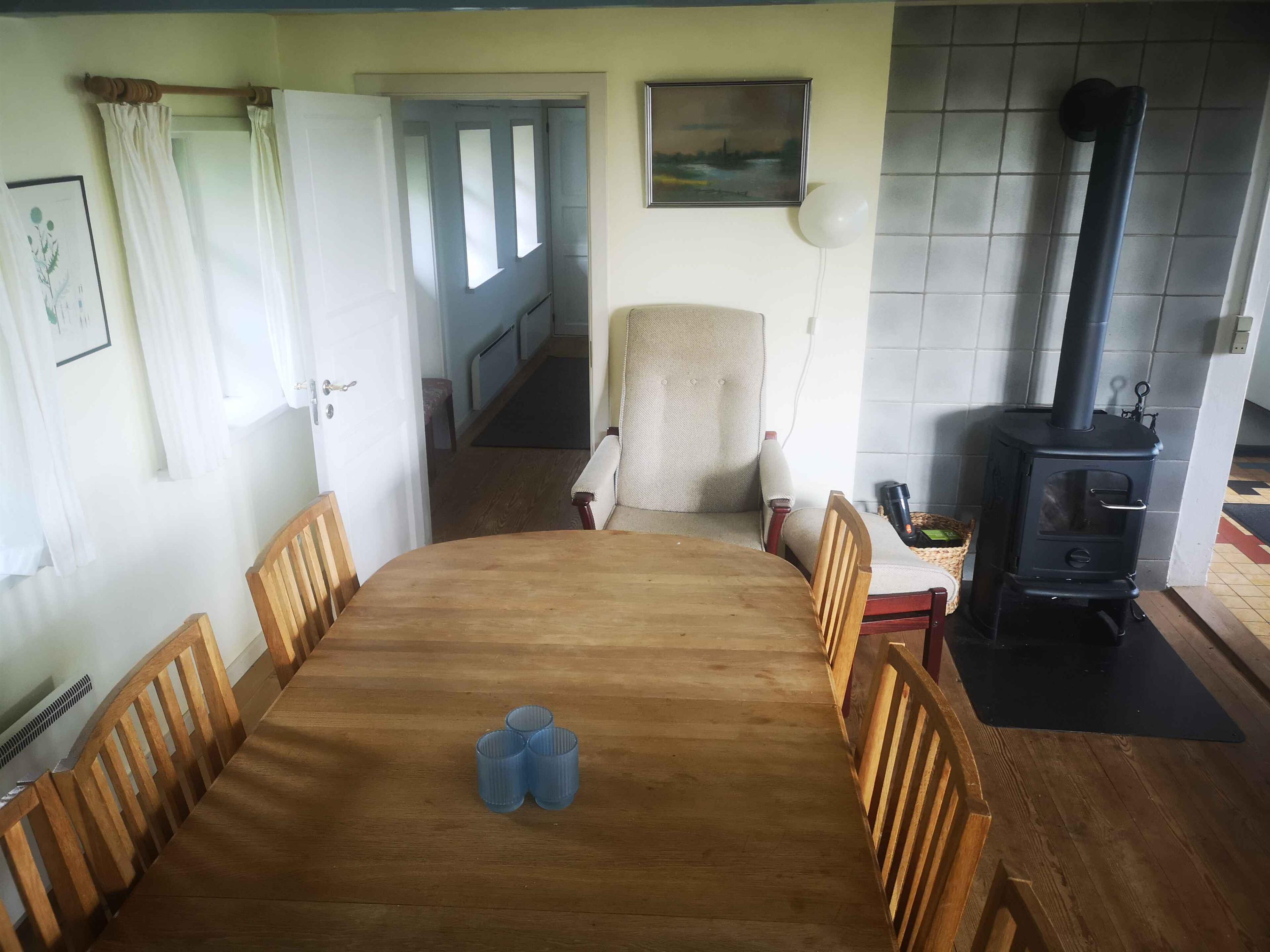 Romantikere, fiskere og andre med lyst til at holde ferie i et hyggeligt, stråtækt feriehus nærmest placeret på stranden og med en fantastisk udsigt over Vejle Fjord – her er chancen! Her er gratis internet, og I må også gerne have et kæledyr med på ferie. Grunden er fuldt indhegnet. Huset er oprindelig opført i 1882 og er løbende renoveret. Der er både elvarme og varmepumpe, så huset kan varmes op året rundt. Stuen er hyggeligt indrettet med brændeovn. Der er fjernsyn med danske kanaler og Chromecast, så I kan se jeres ”egne kanaler”. Her er også en barnestol, hvis I har brug for det. Køkkenet er indrettet med bl.a. mikroovn og miniovn, og her har man den mest fantastiske udsigt over vandet gennem de små, sprossede vinduer. Her kan man geare ned og slappe af, mens man (næsten) nyder at vaske op. Huset sovepladser er fordelt på 3 værelser, hvoraf det ene er i et anneks. Det ene soveværelse har en dobbeltseng. Det andet soveværelse har en sovesofa til 2 personer, og så er der to sovepladser i annekset. Badeværelset er indrettet med brusebad, toilet og varme i gulvet. Her er også vaskemaskine. Udenfor er der den mest fantastiske, åbne terrasse med havemøbler og med fuld udsigt over strandet og vandet. Der er p-plads til bilen. Huset ligger ca. 20 km fra Vejle, hvor der er gode indkøbsmuligheder og gastronomi på et højt plan. Af attraktioner i området kan nævnes: - Jellingmonumenterne (UNESCO) fra Harald Blåtands tid i Vejle Ådal - Givskud Zoo, der, ud over de mange dyr, også byder på Danmarks største dinosaurudstilling med over 50 dinosaur i naturlig størrelse - Kulturmuseet, der fortæller danmarkshistorien set fra Vejle, fra oldtiden til i går. - Økolariet, der er et spændende videns- og oplevelsescenter om bæredygtighed, natur, miljø, energi og klima. Der er ca. 35 km til Kolding, hvor I bl.a. kan besøge Koldinghus