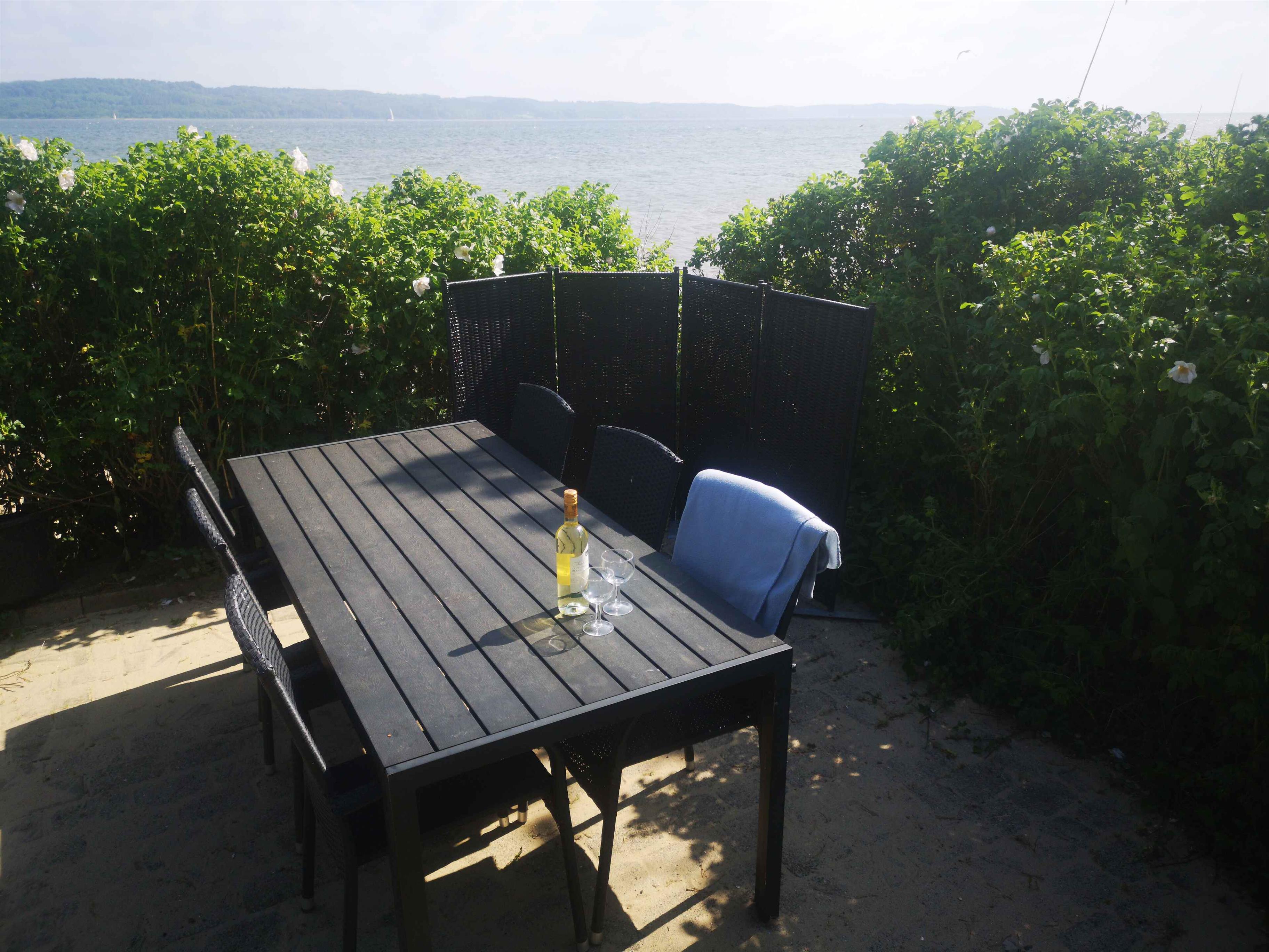 Feriehus lige ved stranden og udsigt til fjoden.