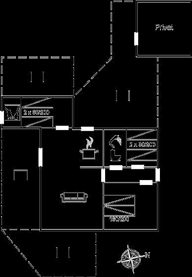 Bemærk, at den ene soveplads er på en madras i det ene værelse.