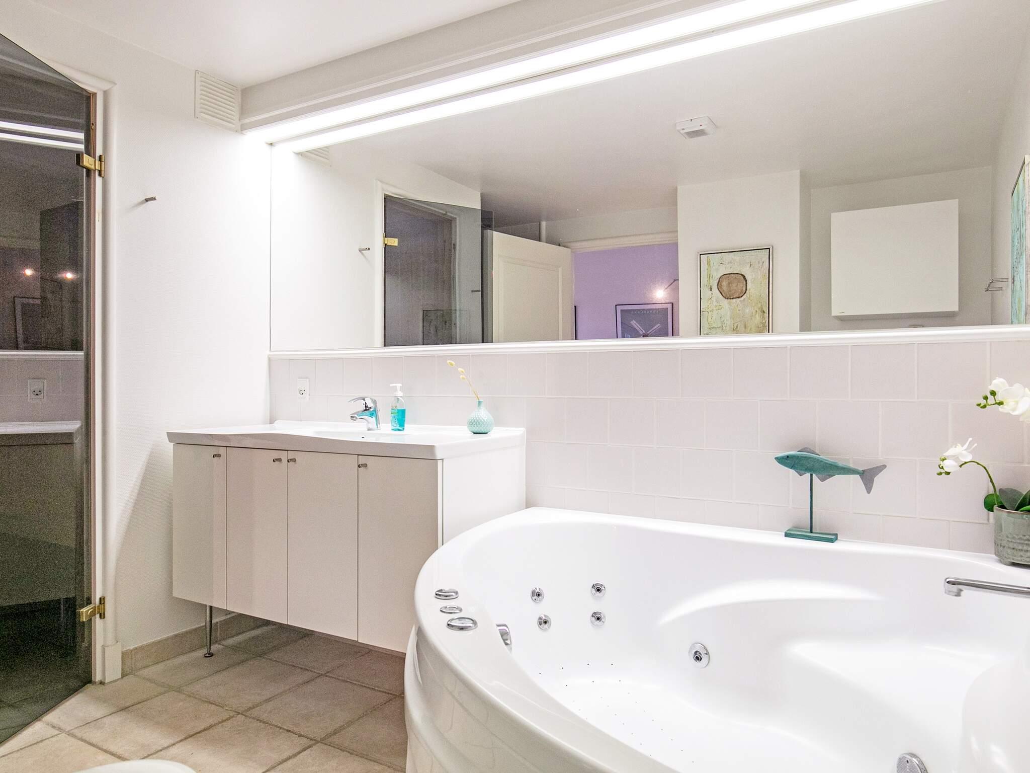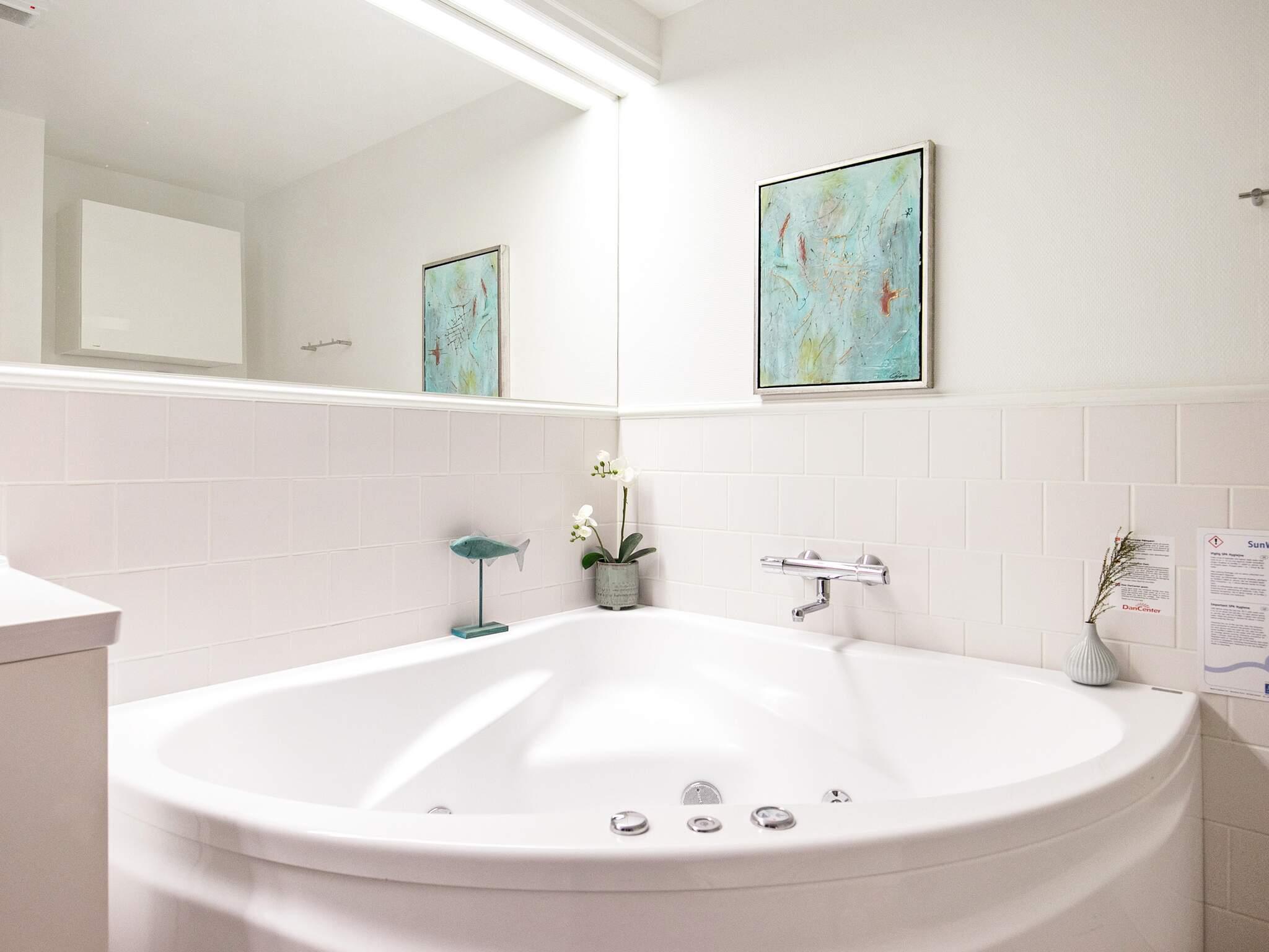Lejligheden ligger både på 1. og 2. sal og er møbleret med moderne kvalitetsmøbler. 1. sal indeholder garderobe, kombineret køkken og spisestue samt et soverum med mørklægningsgardiner. Badeværelse med 3-personers spabad, bruseniche og sauna til 3 personer.