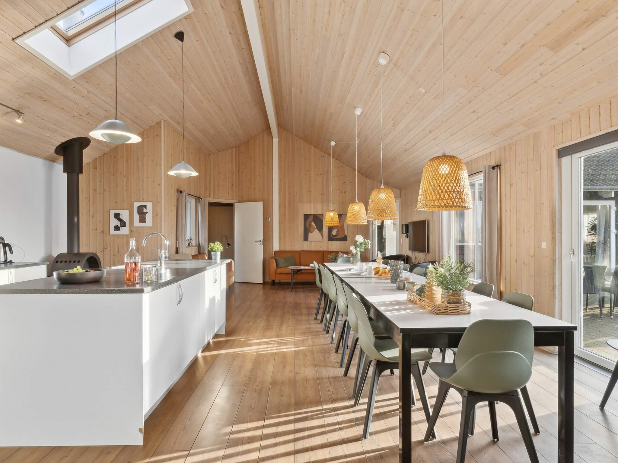 Huset er yderst rummeligt og veldimensioneret. Spise/opholdsrum er smagfuldt indrettet med stereoanlæg med cd-afspiller, fladskærms-tv, 2 højstole, sofaafdeling og brændeovn.