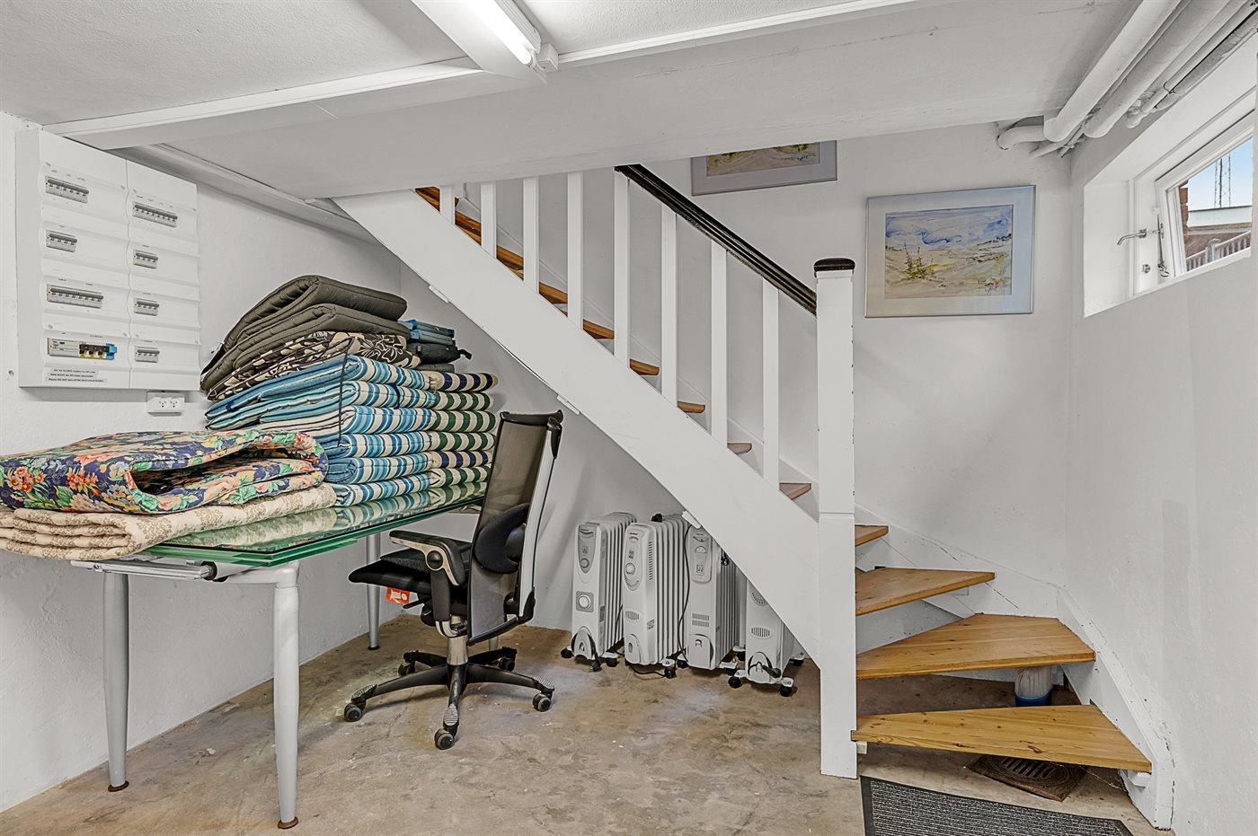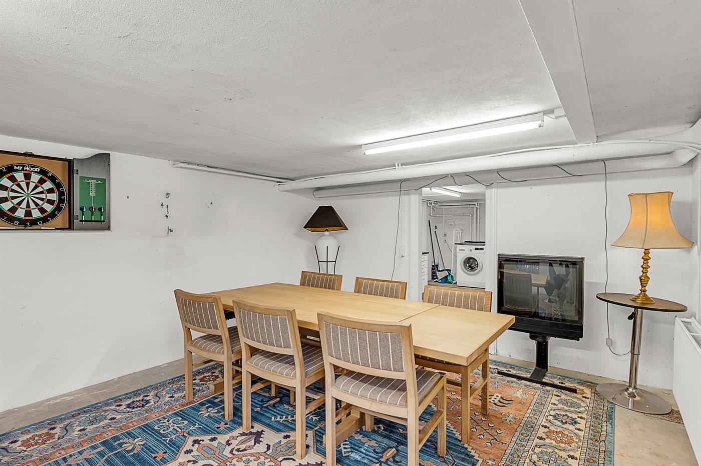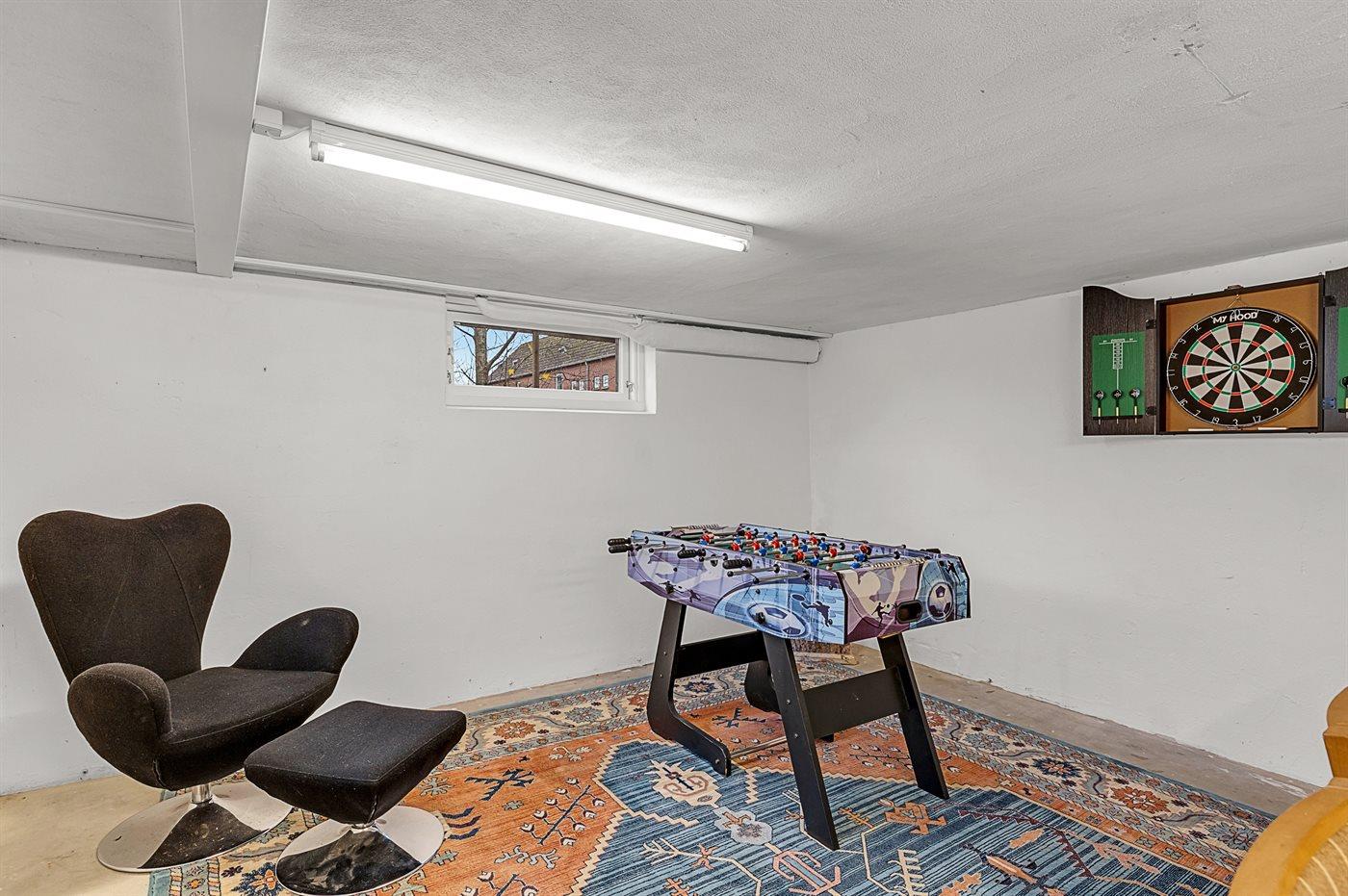 I kælderen er der udover bryggers og toilet et stort aktivitetsrum med flere aktiviteter. Bemærk, at loftshøjden i kælderen er begrænset, hvis man er meget høj.