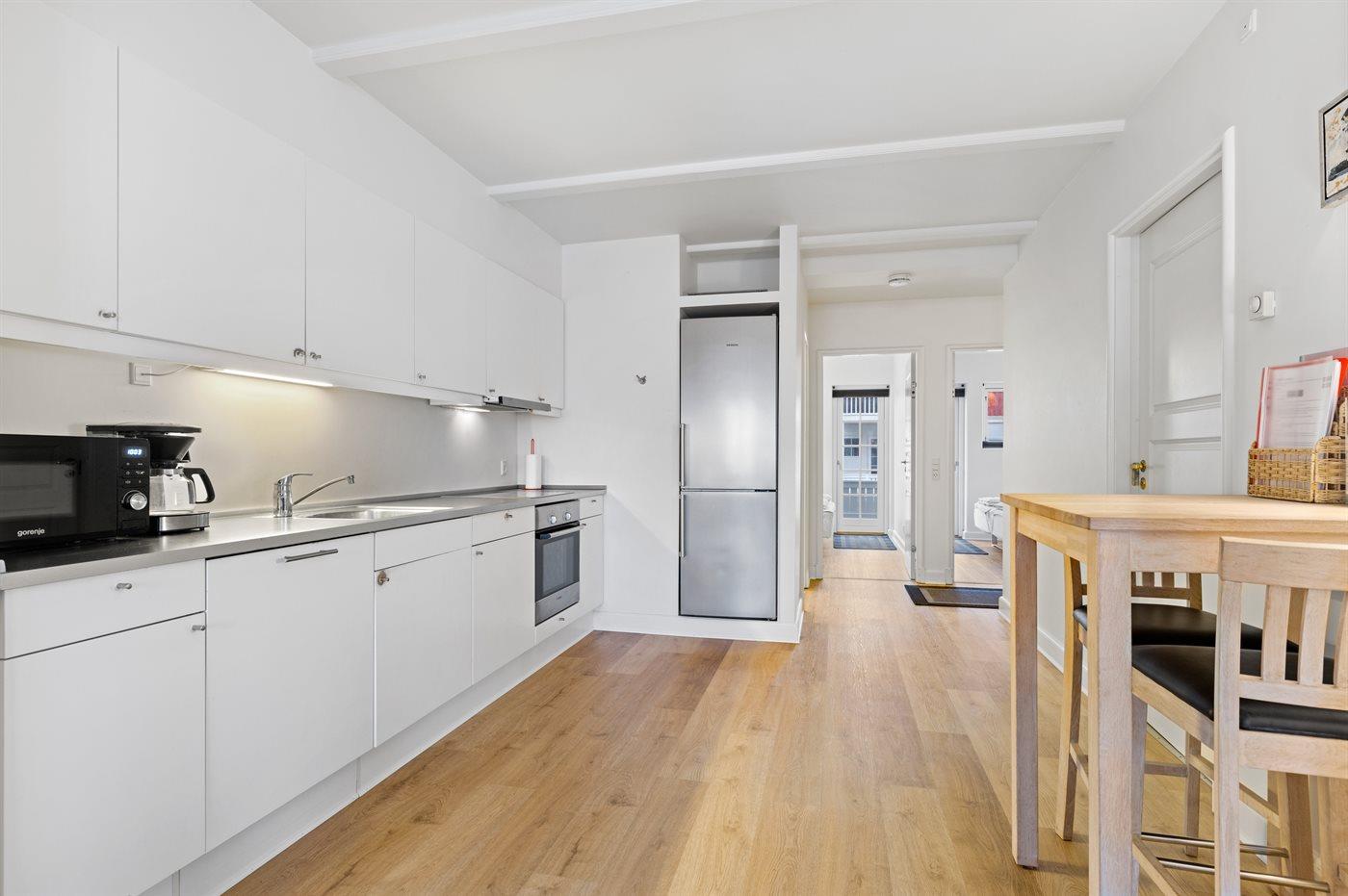 Køkkenet er udstyret med 1 køleskab. Der er 4 keramiske kogeplader, varmluftovn, mikrobølgeovn samt opvaskemaskine.