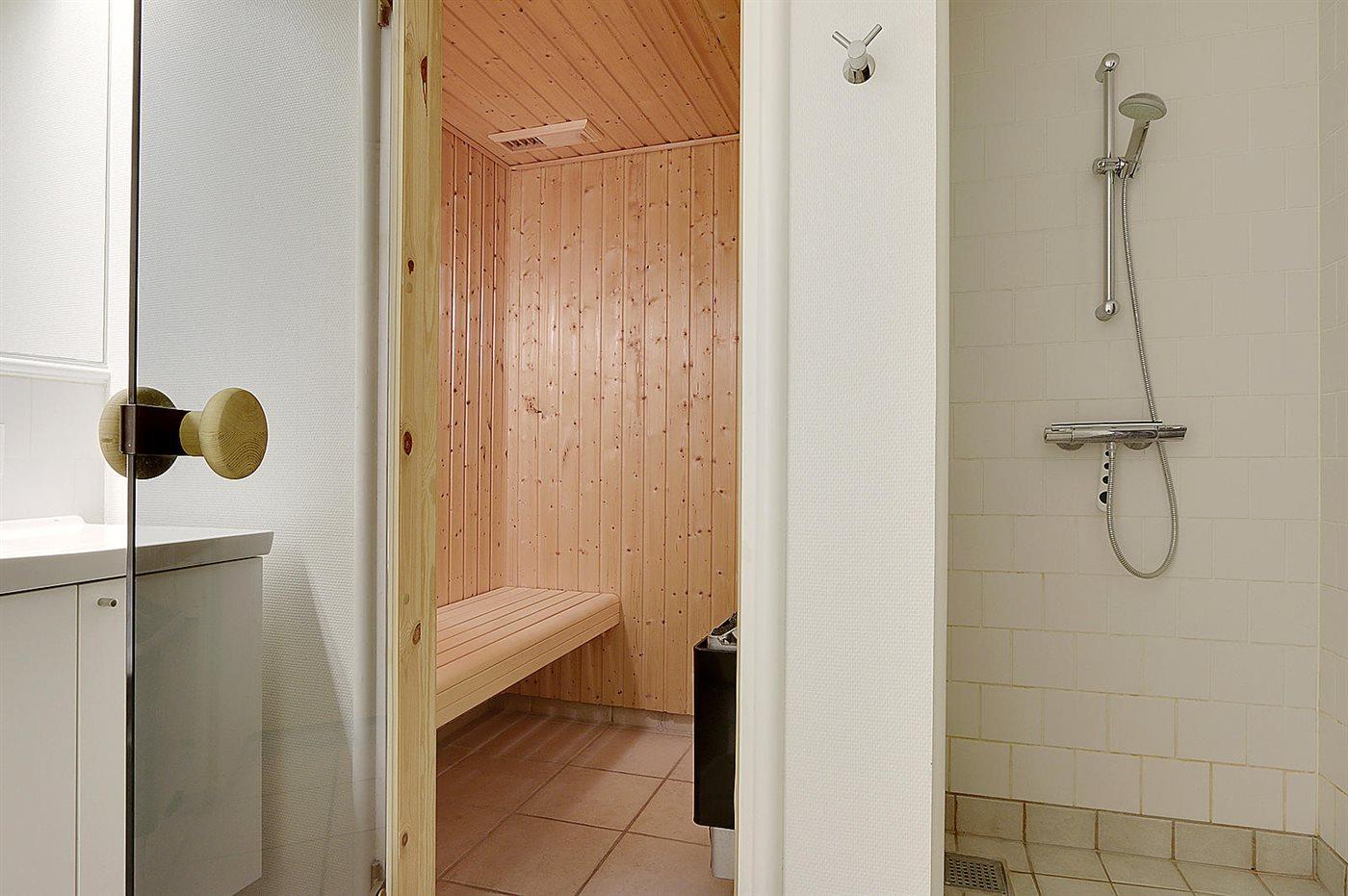 Der er 1 badeværelse med bruseniche og 2 toiletter, heraf 1 gæstetoilet. Der er gulvvarme på 2 badeværelser. I saunaen er der mulighed for afslapning.