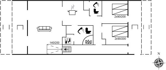 Ferielejligheden egner sig til 6 personer samt 1 barn op til 3 år. Ferieboligen er på 90 m² og er bygget i 2007. Det er ikke tilladt at medbringe husdyr. Hele ferieboligen har gulvvarme. Ferieboligen har vaskemaskine. Frysekapacitet på 80 liter. Der er desuden brændeovn. Til de små er der 2 stk. barnestole.
