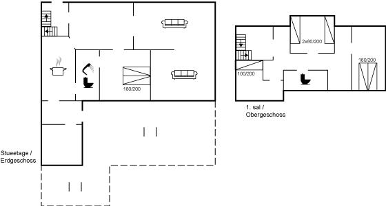 På 1. salen, hvor de fleste sovepladser befinder sig, er der indrettet legeområde til børn. Bemærk at der på 1. salen nogle steder er begrænset loftshøjde.