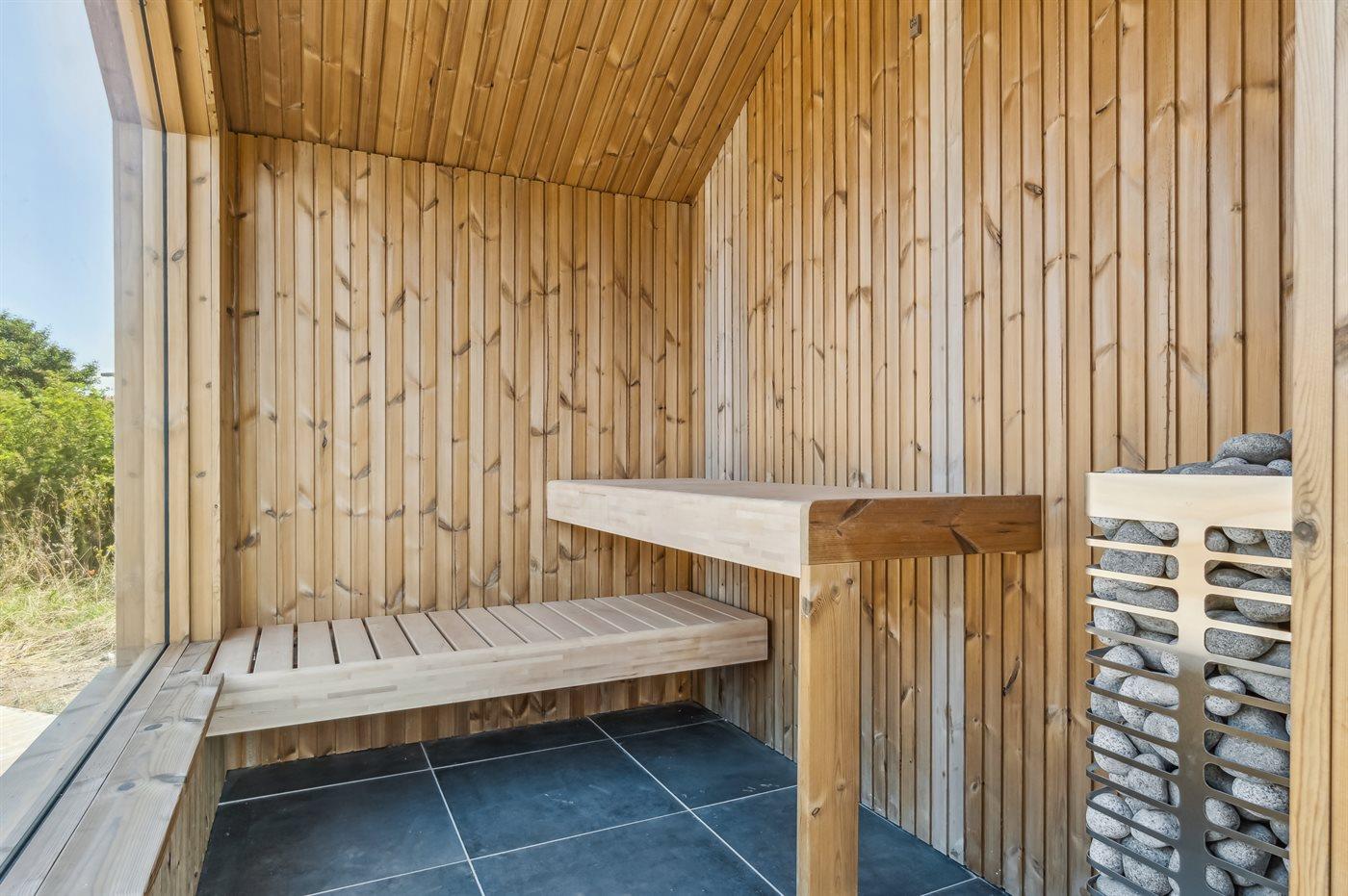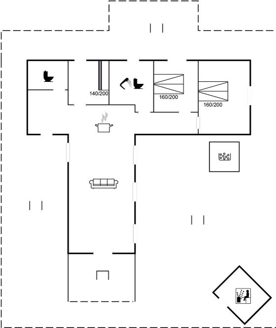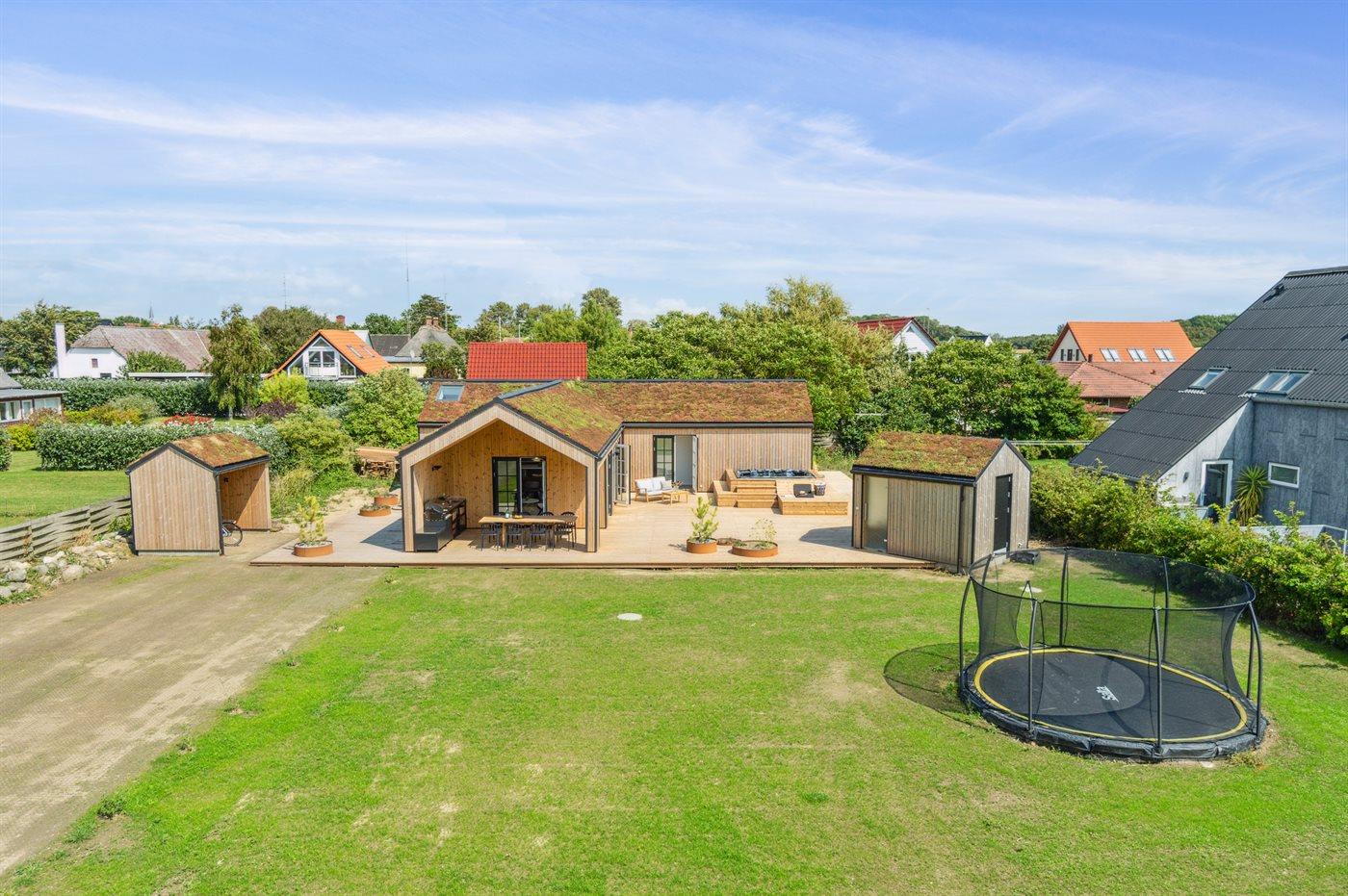 Ferieboligen er beliggende på en 1038 m² stor havegrund. Der er 150 m til havet. Nærmeste forretning er beliggende i en afstand af 275 m. Til ferieboligen hører åbent terrasseareal. Desuden er der overdækket terrasse. Trampolin. Der ligger en legeplads i en afstand af 500 m. Udendørs sauna. Udendørs bruser. Der er mulighed for at tilberede maden udendørs i udekøkkenet. Grill til rådighed. Der er installeret stik til opladning af elbil. Parkering ved ferieboligen.