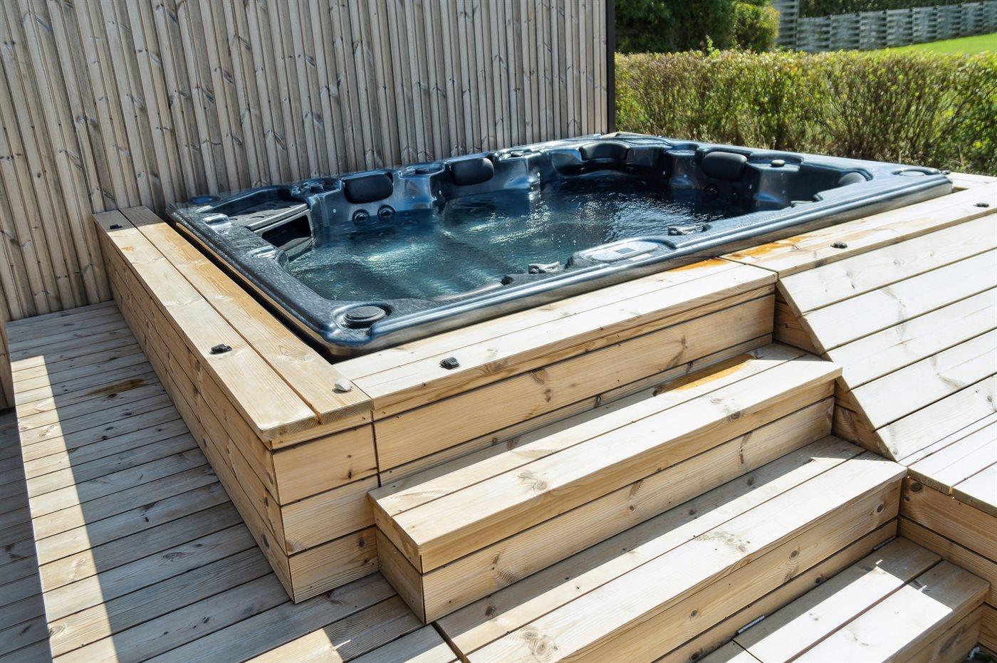 Der er mulighed for afslapning i udendørs standvandsspa til 7 personer.