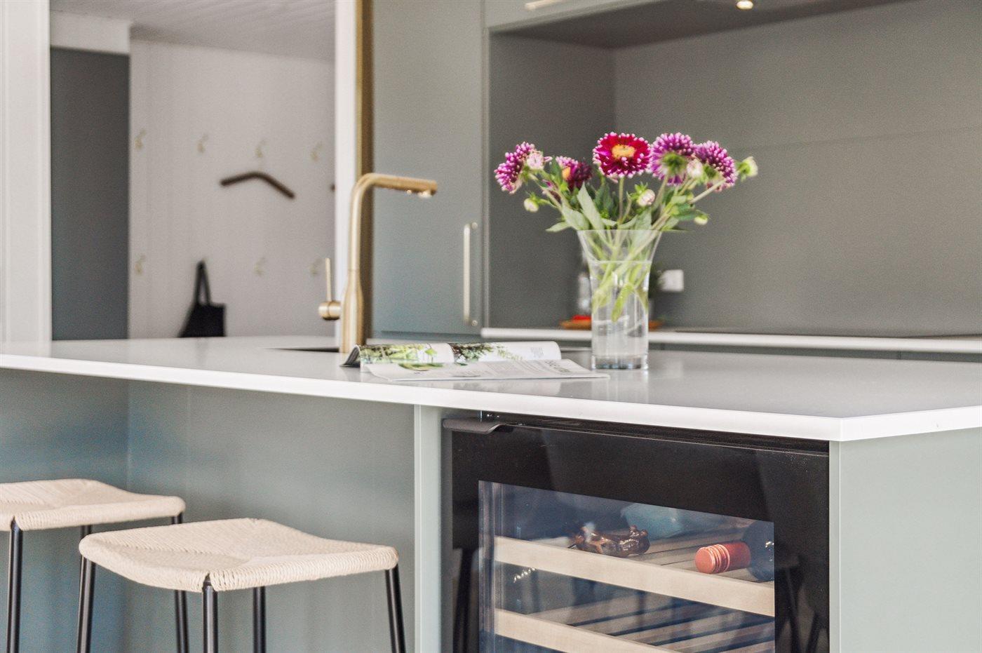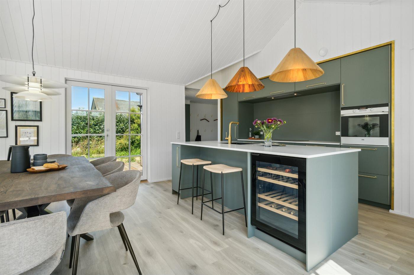 Køkkenet er udstyret med 1 køleskab. Der er 4 induktionskogeplader, varmluftovn samt opvaskemaskine.