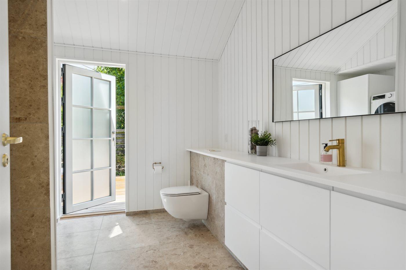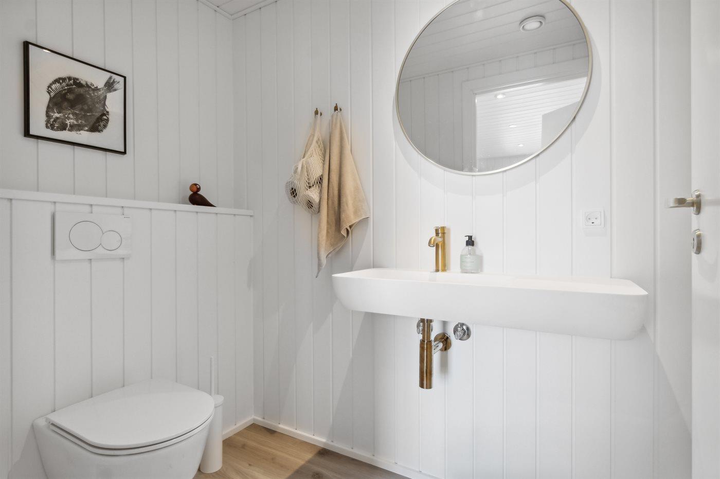 Der er 1 badeværelse med bruseniche og 2 toiletter, heraf 1 gæstetoilet. Der er gulvvarme på 1 badeværelse. Der er gulvvarme på gæstetoilettet.