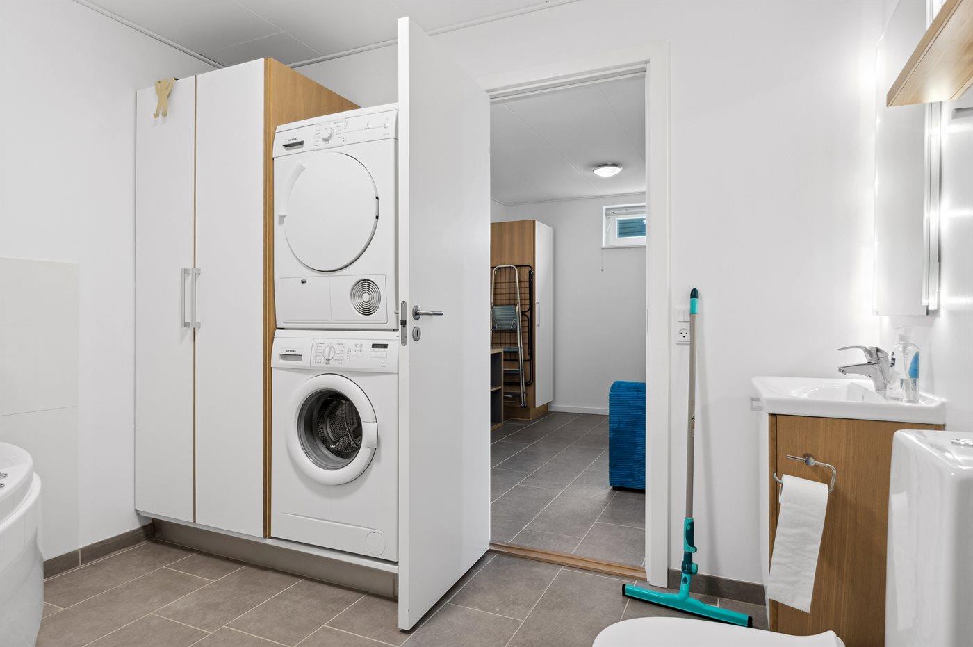 Der er 2 badeværelser med bruseniche og 2 toiletter. Der er gulvvarme på 2 badeværelser.