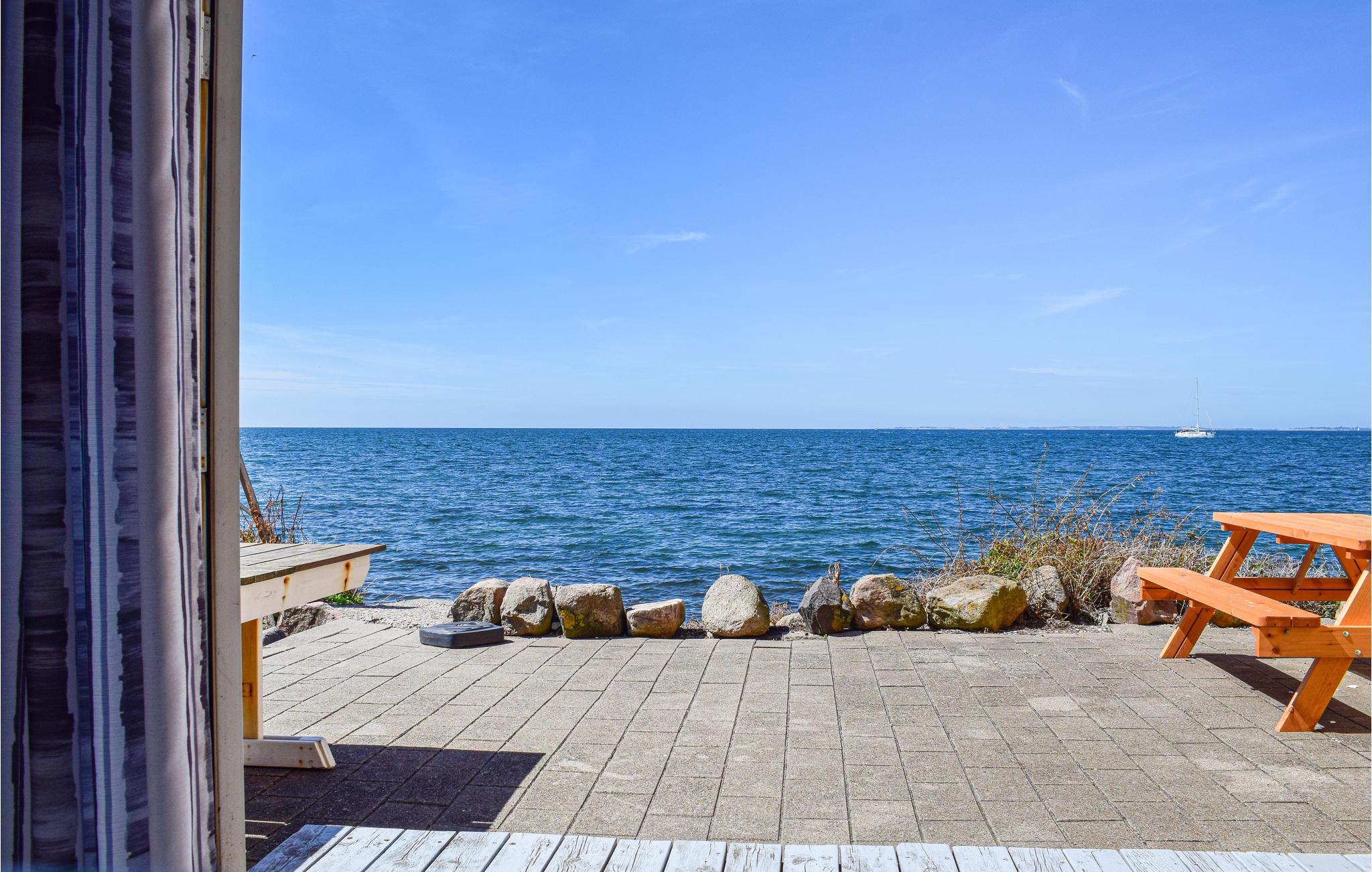 Dette dejlige stensommerhus har en enestående beliggenhed, ned af trappen og få meter efter, så er du ude i vandet. På alle tider af året vil du kunne høre vandet skvulpe, om sommeren fra den åbne terrasse eller er det for koldt til at sidde på terrassen, så slå terrassedørene i stuen op. God badestrand findes ca. 650 fra feriehuset. Huset har faste tæpper, bortset fra i køkken, entre, badeværelser og gangen. Huset ligger i Bagenkop, Langelands sydligste by, hvor I kan opleve den maritime stemning på havnen. Her er både fiskerihavn, lystbådehavn, lille legeplads og bådudlejning. På Sydlangeland findes bl.a. vilde heste koldkrigsmuseet Langelandsfortet, udsigtshøj, fuglereservat, smuk natur, klinter, 18 hullers golfbane (9,8 km) og ikke mindst gode fiskemuligheder.