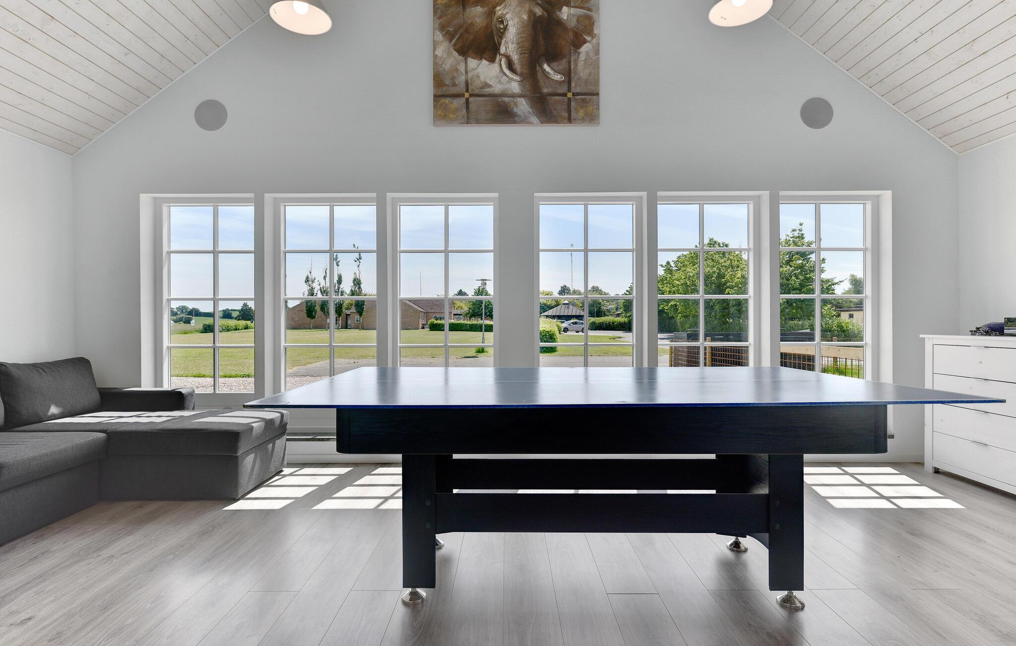 Hyggeligt feriehus i Bagenkop med aktivitetsrum, spabad, sauna og indhegnet sø på stor grund.