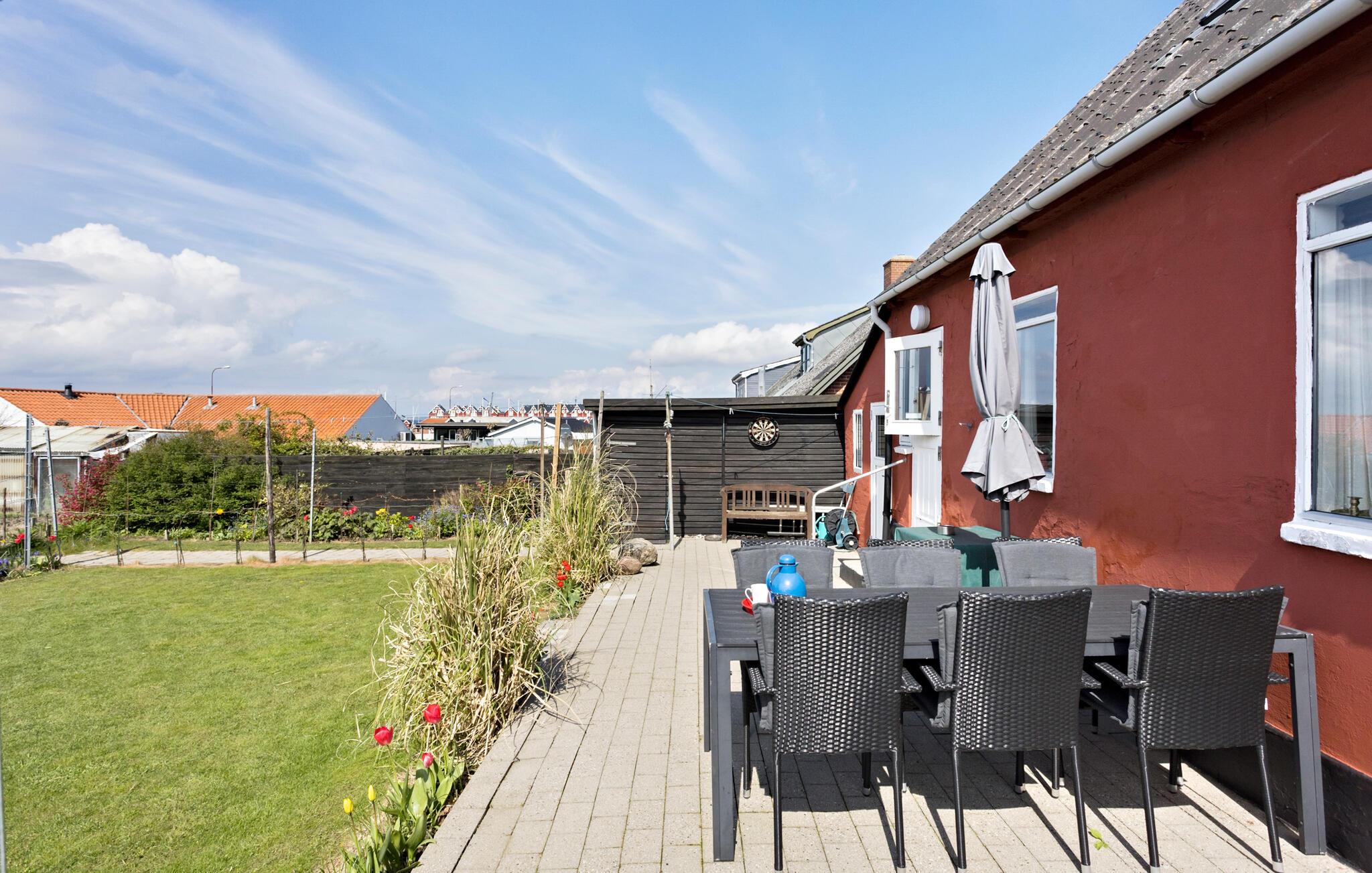 Tag familien under armen og rejs til Langeland, hvor I i hyggelige Bagenkop får en skøn base i dette charmerende hus, der egner sig til et besøg hele året rundt. Huset er indrettet med masser af charme, festlige farveskalaer og pæn kunst på væggene, der giver interiøret et hjemligt strejf og straks får skuldrene til at sænke sig. Fra overetagen kan I se havnen, mens I fra stueetagen har udgang til den skønne terrasse.
