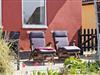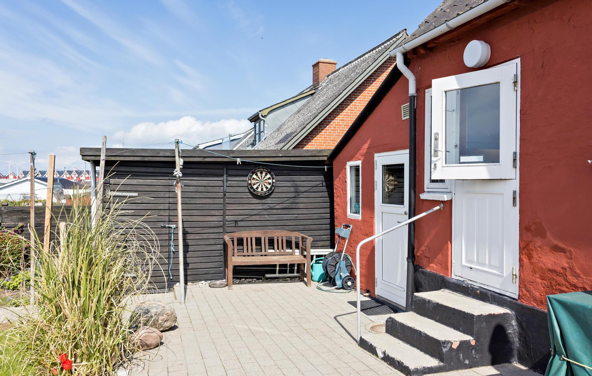 Haven er virkelig dejlig med blomsterbede og god plads at lege på for børnene. Her finder I også en sidebygning, hvor der et ekstra toilet og praktiske husholdningsapparater, I kan benytte jer af.