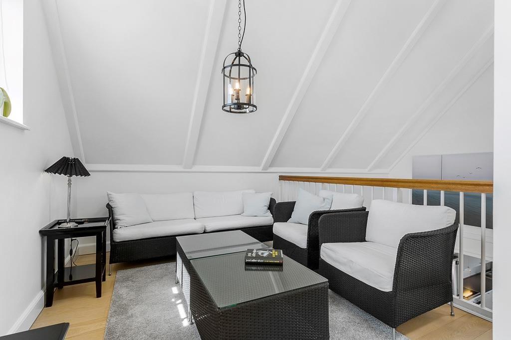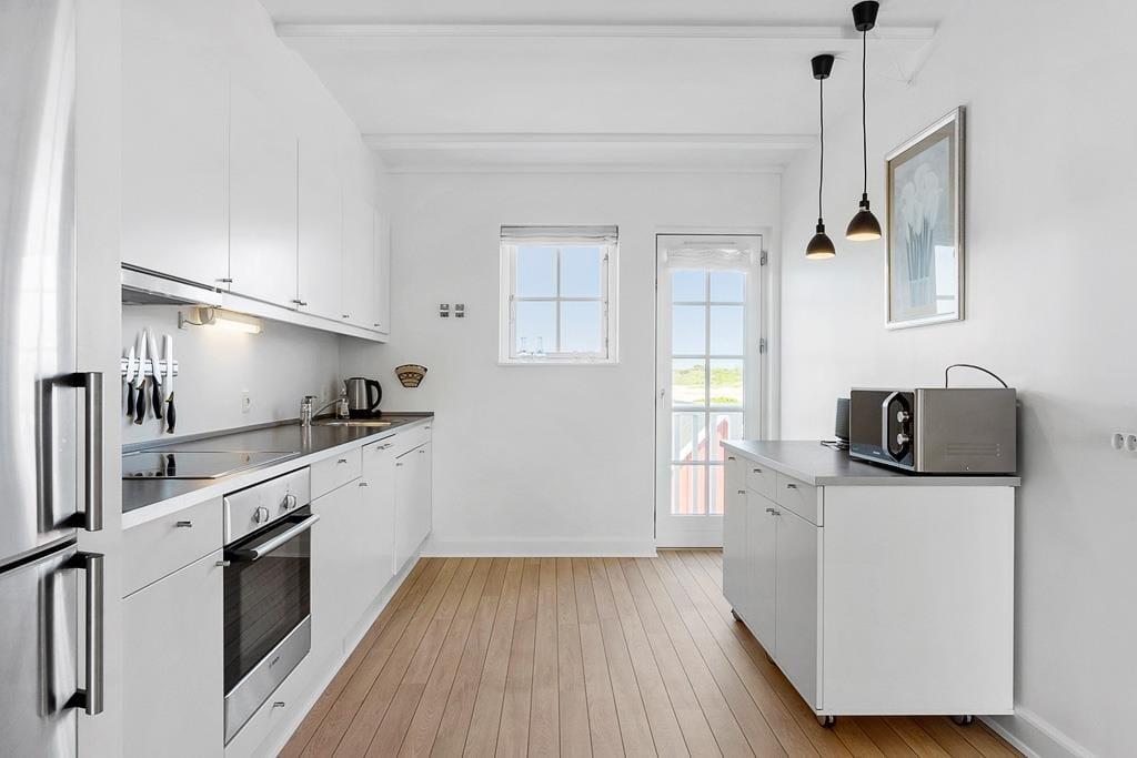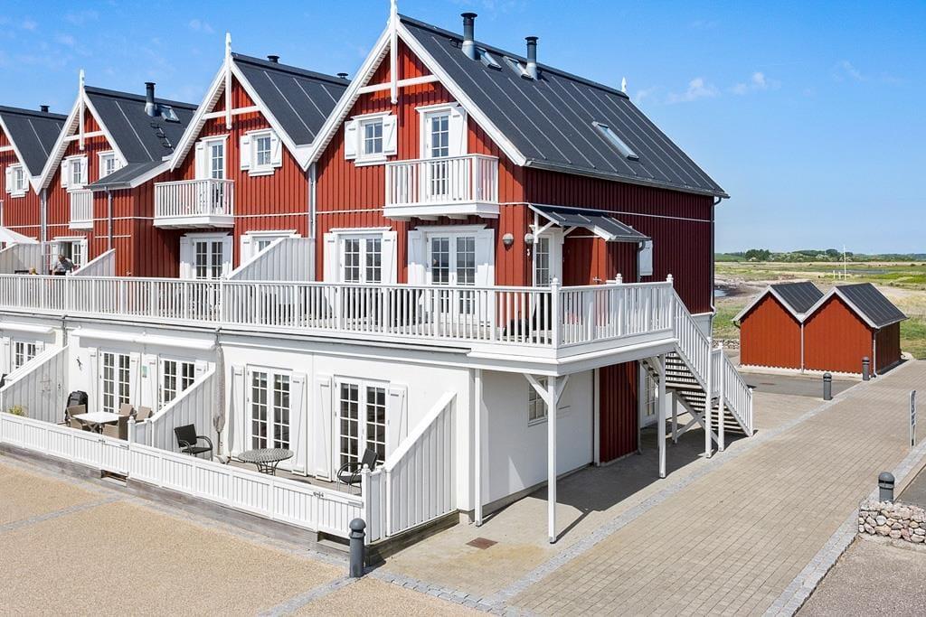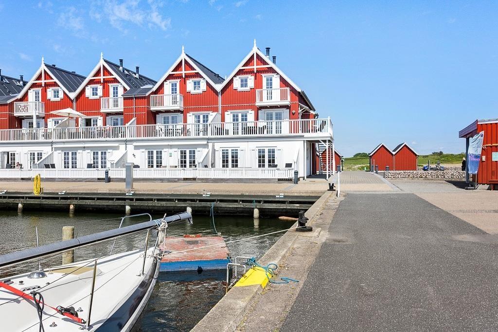 Når du træder indenfor i denne lyse og indbydende ferielejlighed, vil du straks føle dig hjemme. boligen er indrettet med tre rummelige soveværelser og to badeværelser, hvoraf det ene er udstyret med et lækkert spabad – perfekt til at koble af efter en dag med aktiviteter. Køkken-alrummet er hjertet i huset, og den stilfulde indretning skaber en behagelig atmosfære, hvor du kan nyde hyggelige middage med udsigt til marinaen. Når aftenen falder på, kan du tænde op i den hyggelige pejs i stuen og lade roen sænke sig, mens du ser flammerne danse og lytter til bådene, der vugger blidt i havnen.