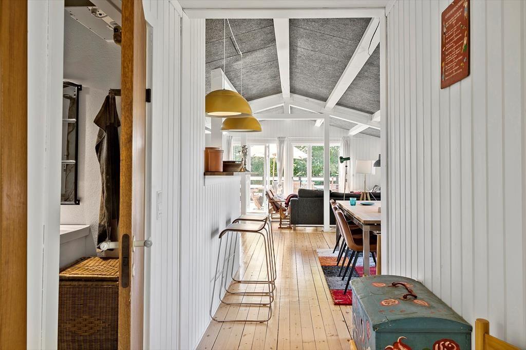 Man træder direkte ind i køkkenet som er åbent til stuen. Her er der opvaskemaskine og mikrobølgeovn,