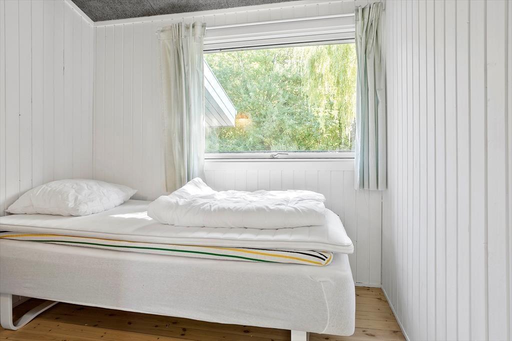 Fra stuen kan man gå ind i et fint lyst soveværelse med 2 senge.