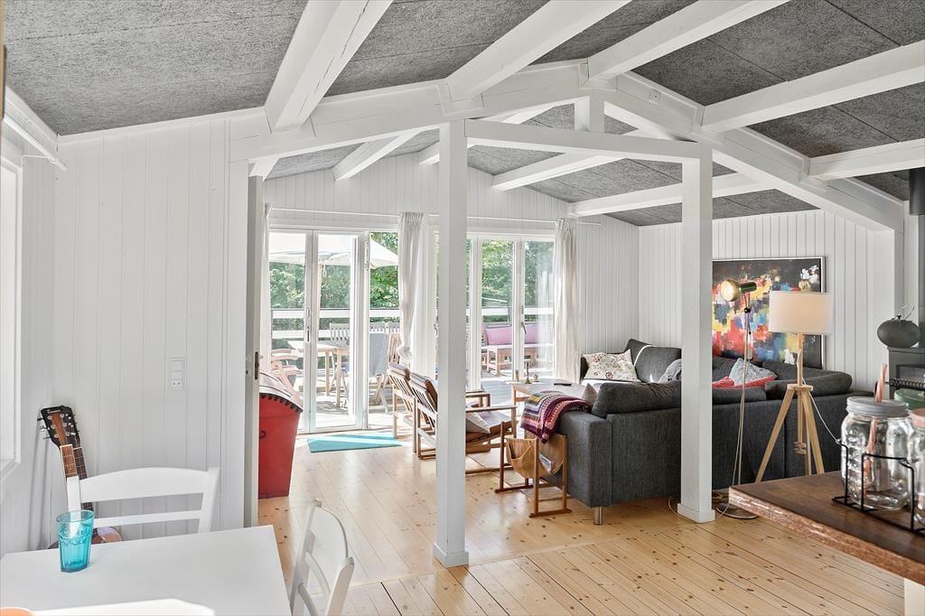 Dejligt nyere lyst og indbydende sommerhus i Bakkebølle med terrasse på 3 sider.