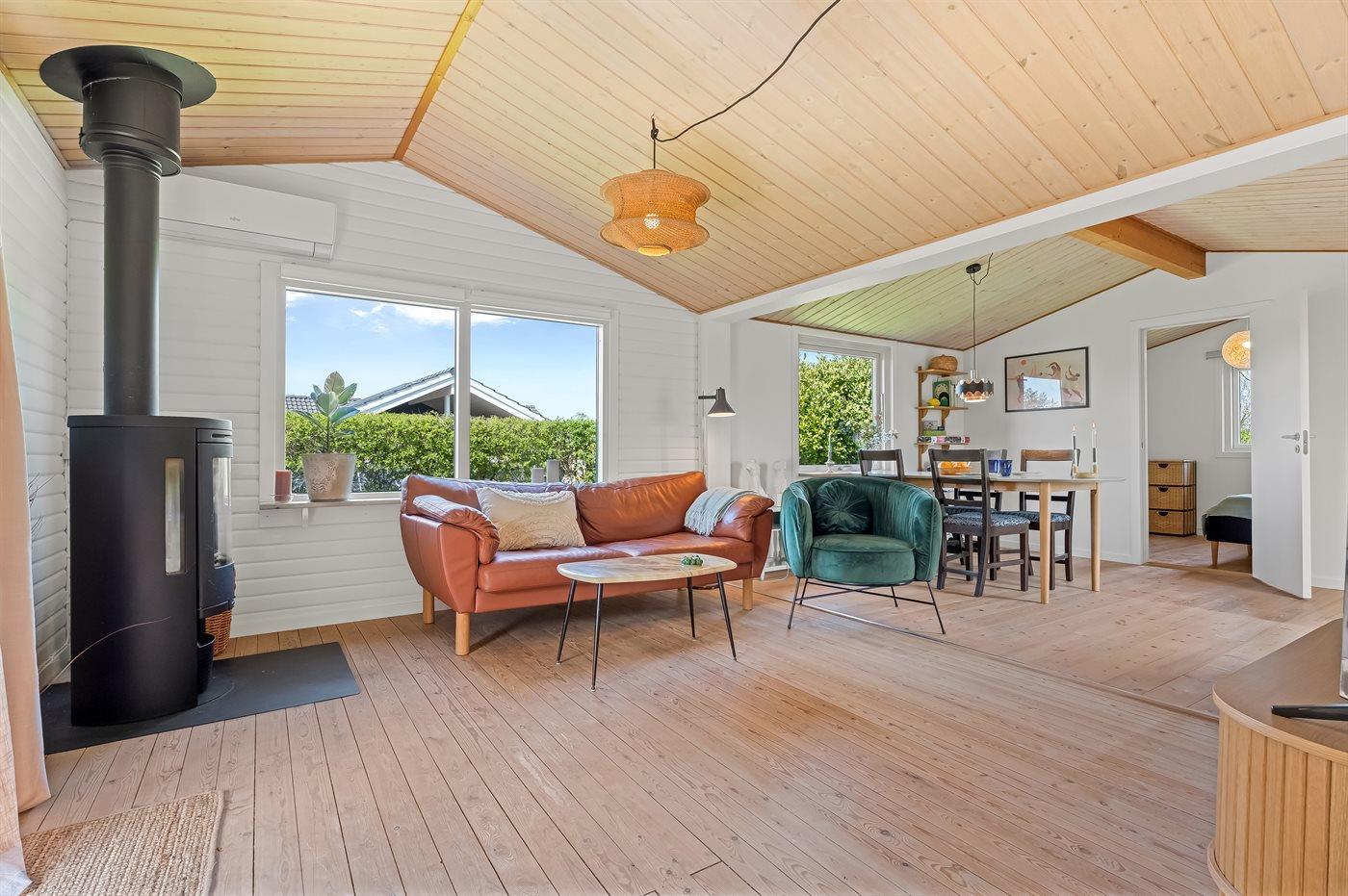 Feriehuset er indrettet med en masse familiehygge for øje. Dejlig stor stue med plads til hygge og leg, sofaafdeling og spiseområde til det store spisebord. To soveværelser med hver sin dobbeltseng. Hyggeligt køkken og selvfølgelig separat badeværelse og toilet.