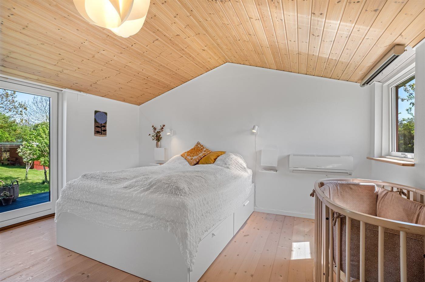 Der er i alt 2 soveværelser. Sovepladserne fordeler sig på: 4 sovepladser i dobbeltsenge. Derudover er der 1 stk. barneseng.
