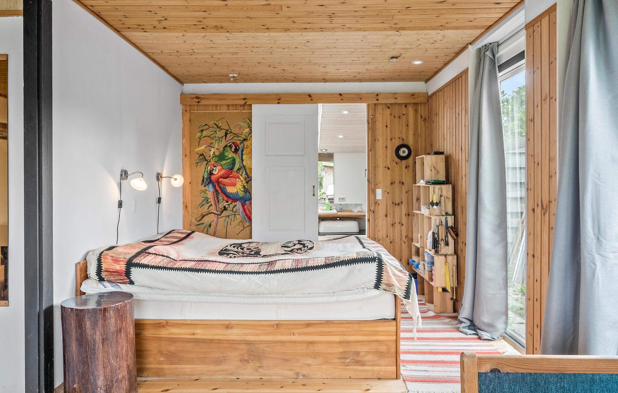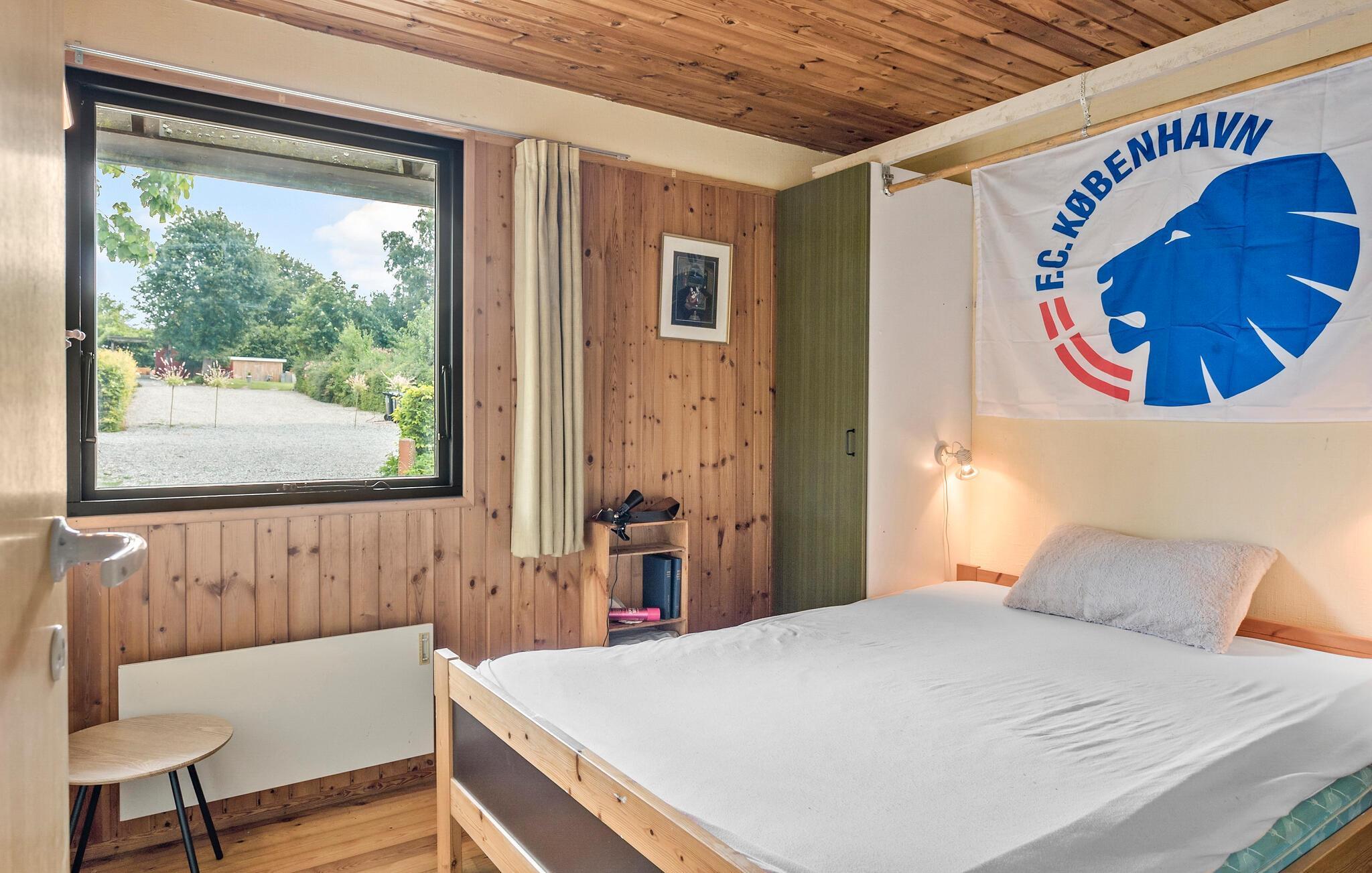 Hyggeligt sommerhus nær Bakkebølle Strand med plads til 7 personer, brændeovn og stor naturgrund.