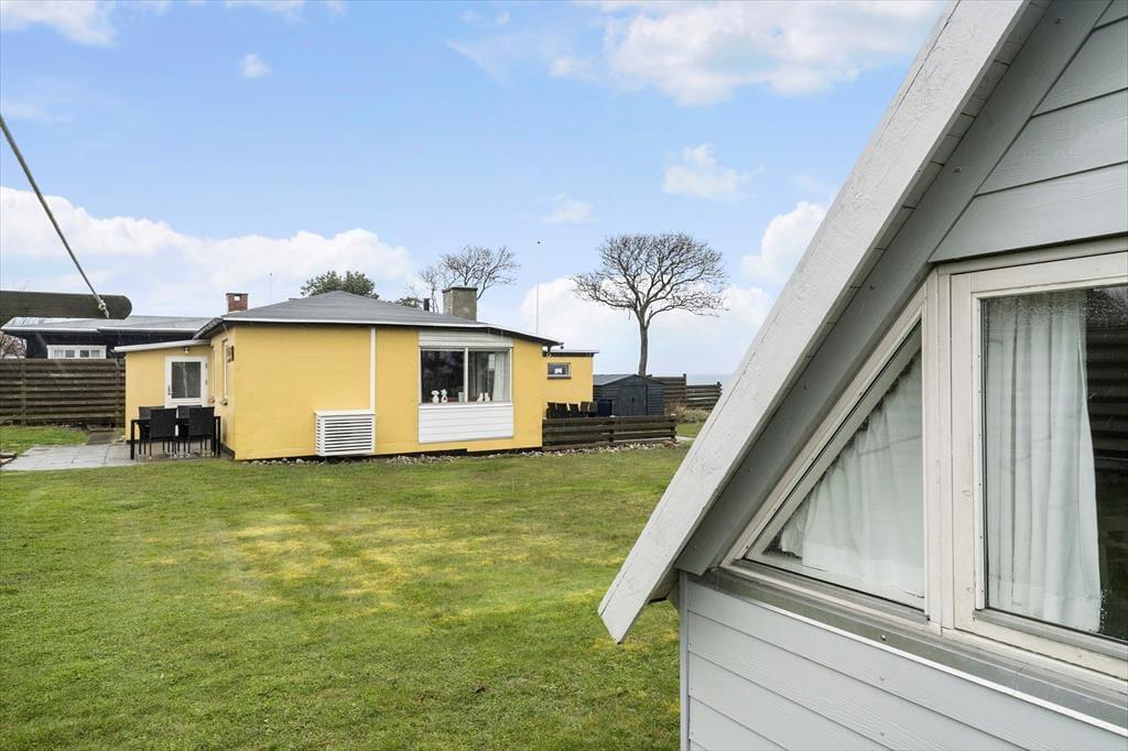Sommerhuset er på en dejlig, delvis lukket grund med græsplæne, hvor der er plads til uforstyrret leg og afslapning. Grunden ligger lige ned til vandet på Samsøs østkyst, så det er oplagt at gå ned og tage en dukkert eller bruge den anlagte fliseterrasse ganske få meter fra vandkanten. Her er der garanti for smukke solopgange, og man kan følge med i skibstrafikken i Kattegat. Der er flere terrasser i forskellige niveauer både foran og bag huset, så der gode muligheder for sol, læ og skygge i løbet af dagen. I haven er også en gasgril og godt udvalg af havemøbler.