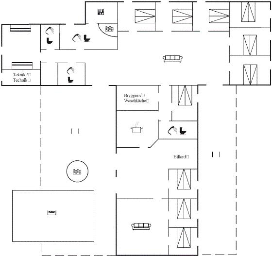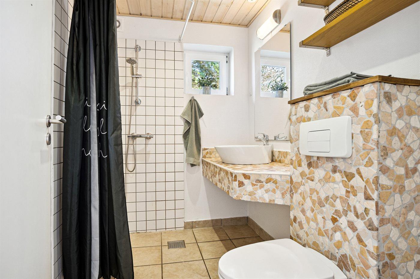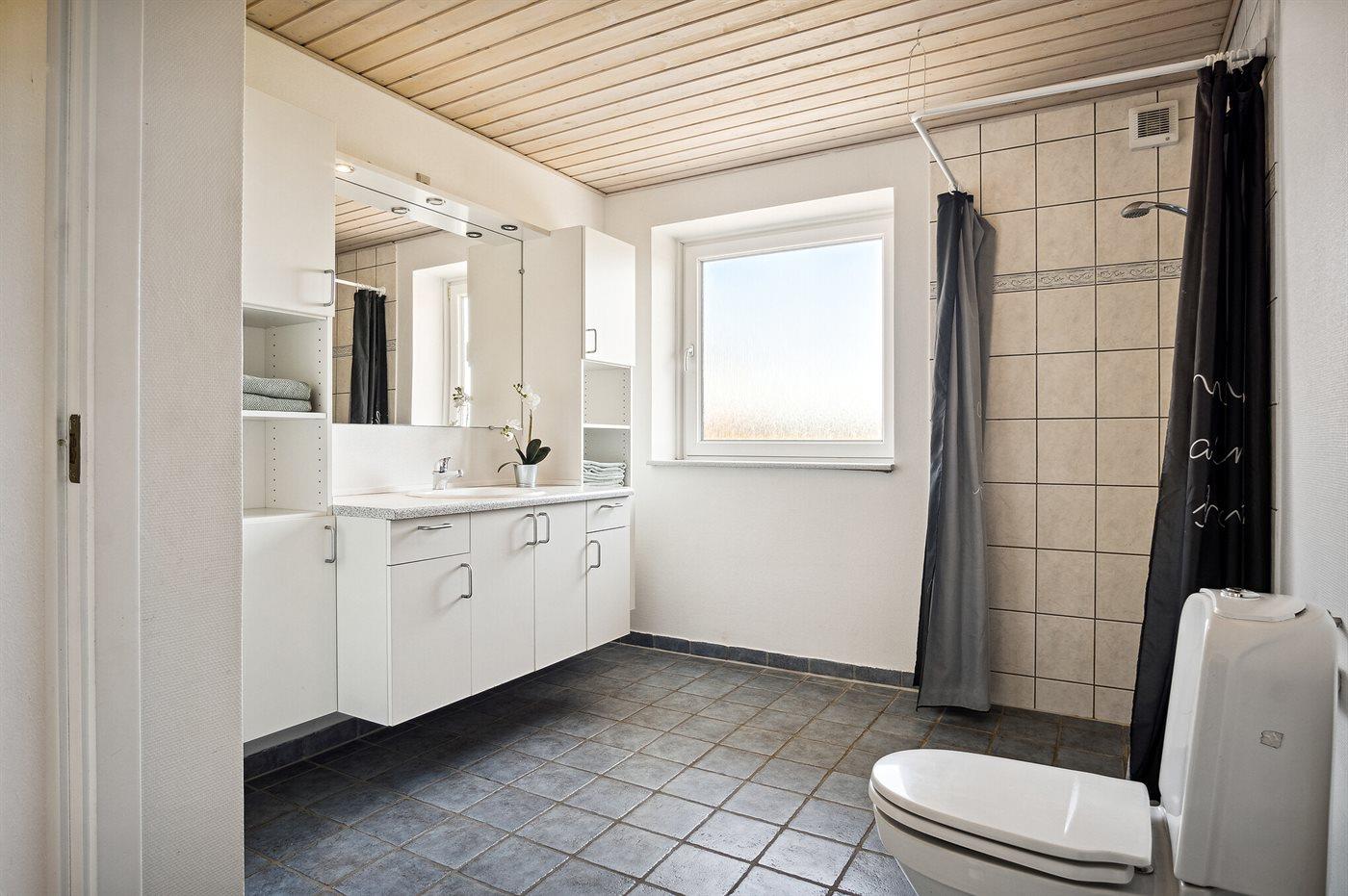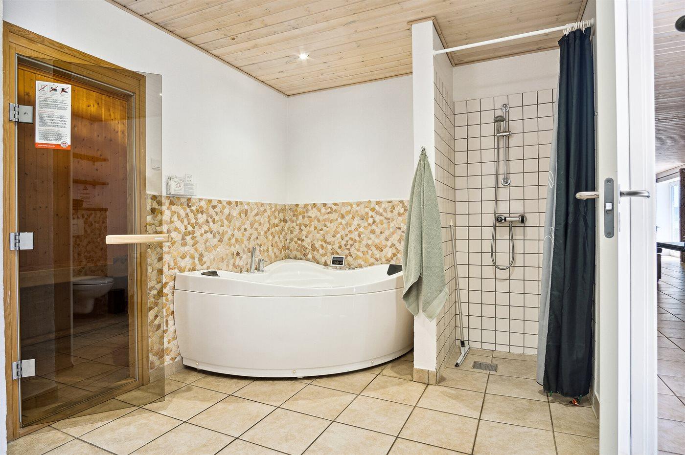 Der er 4 badeværelser med bruseniche og 4 toiletter. Der er gulvvarme på 1 badeværelse. Dampkabine. I saunaen er der mulighed for afslapning.