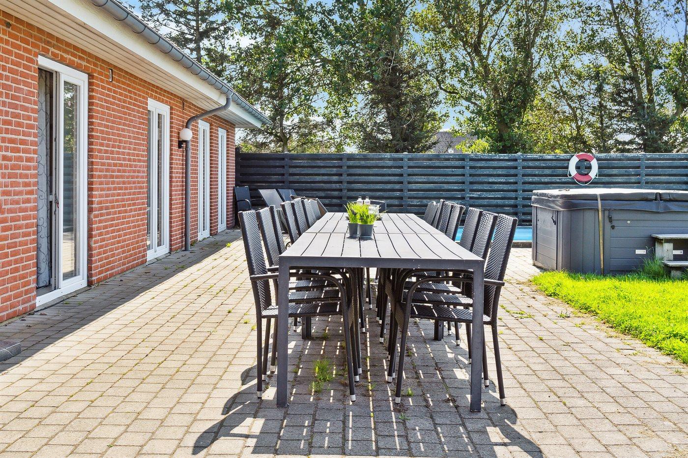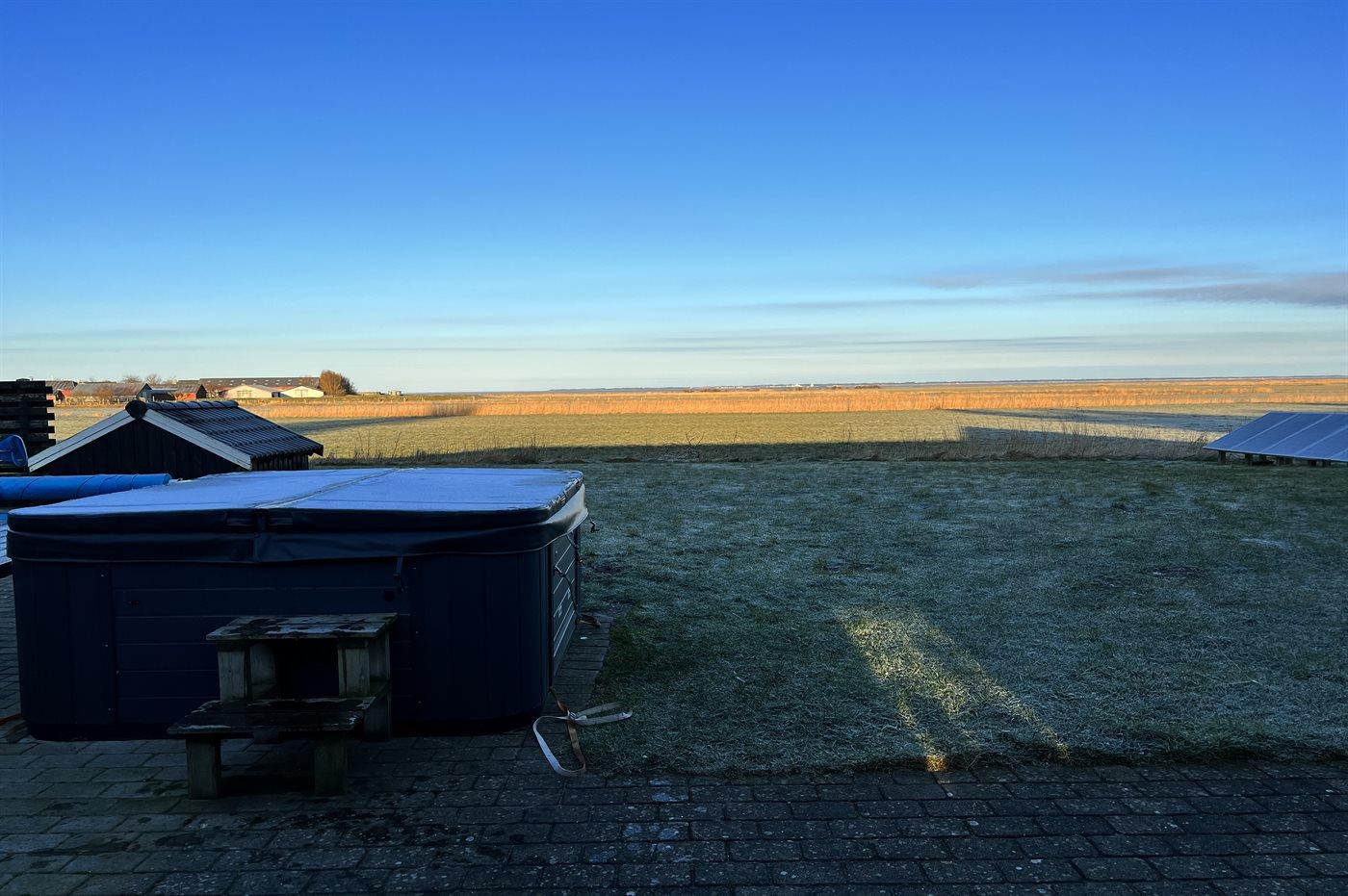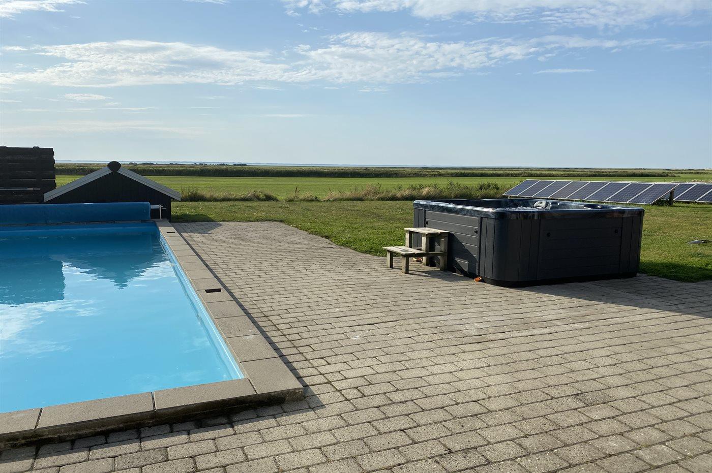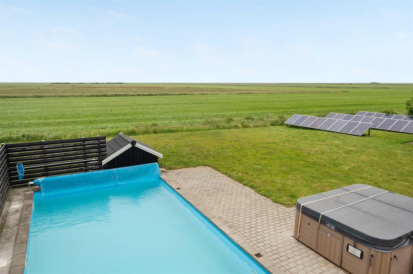 Dette skønne sommerhus med udendørs swimmingpool og 9-pers. udendørs spa (standvand) ligger på en havegrund tæt på Vadehavet. Der er havudsigt fra såvel hus som grund. Swimmingpoolen (8,0 x 5,0 x 1,2 m) kan kun benyttes i perioden fra 01. maj til 30. september. Til sommerhuset hører et stort og skønt terrasseareal med havemøbler. Et skønt sommerhus til en dejlig ferie for flere familier - beliggende i et roligt ferieområde med en smuk natur.