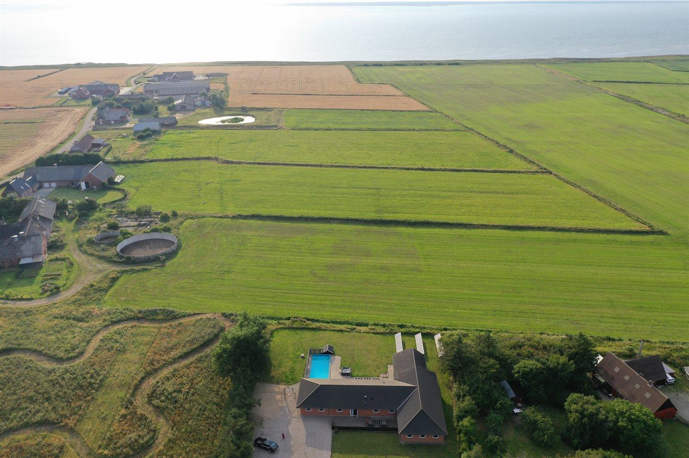 Skønt sommerhus med pool, spa og havudsigt nær Vadehavet - perfekt til familieferie i roligt område.