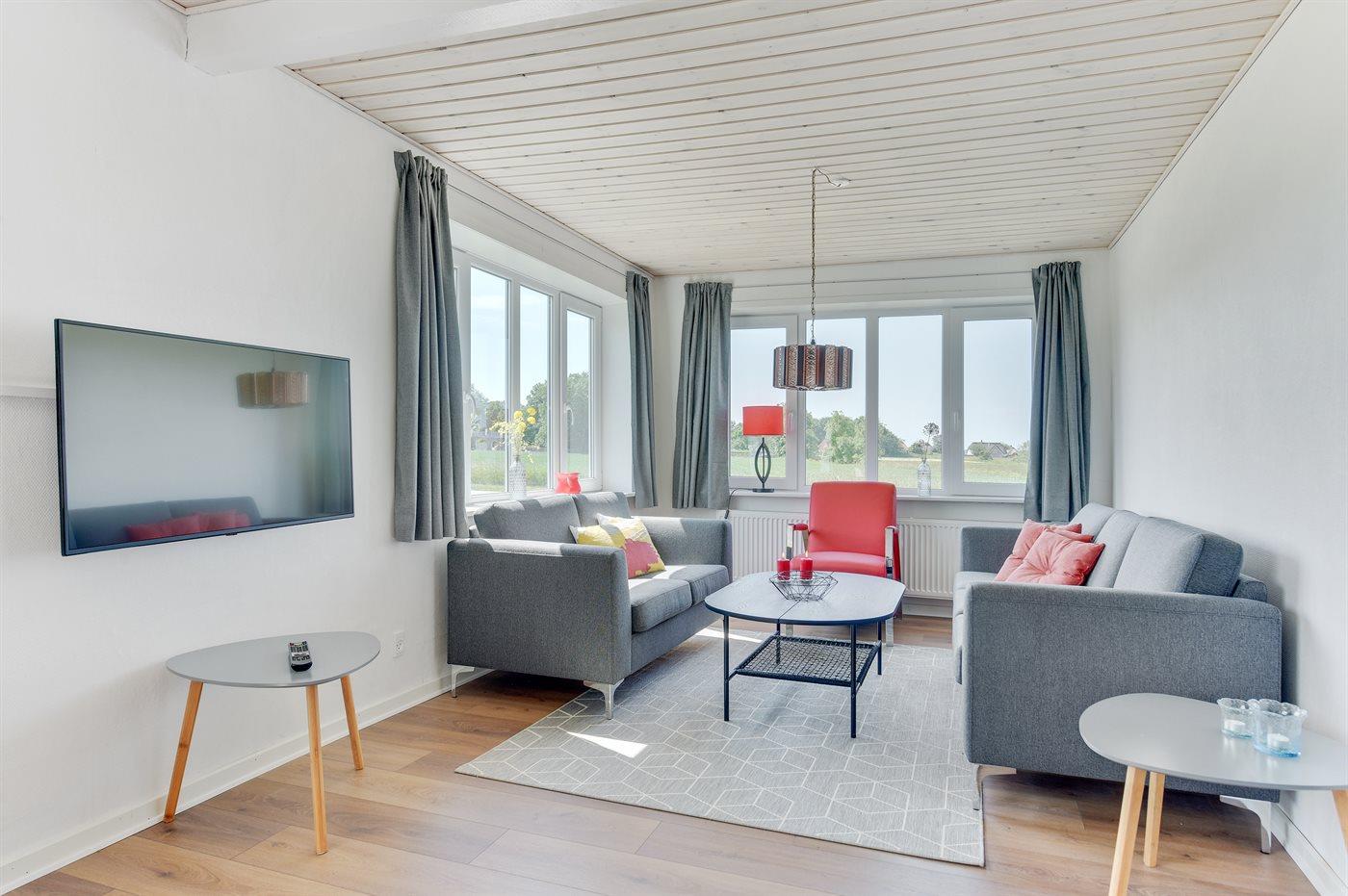 Ikke langt fra Vadehavet ligger dette nyrenoverede sommerhus. Bemærk: 2 af sovepladserne befinder sig på dobbelt sovesofa i opholdsstuen.