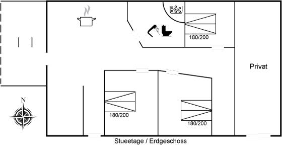 Der er i alt 3 soveværelser. Sovepladserne fordeler sig på: 6 sovepladser i dobbeltsenge. Derudover er der 1 stk. barneseng.