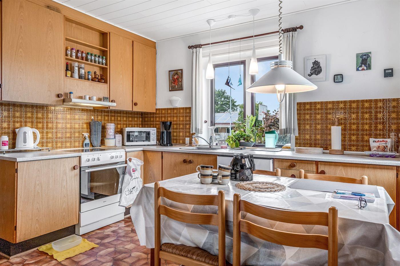 Køkkenet er udstyret med 1 køleskab. Der er 4 keramiske kogeplader, varmluftovn, mikrobølgeovn samt opvaskemaskine.