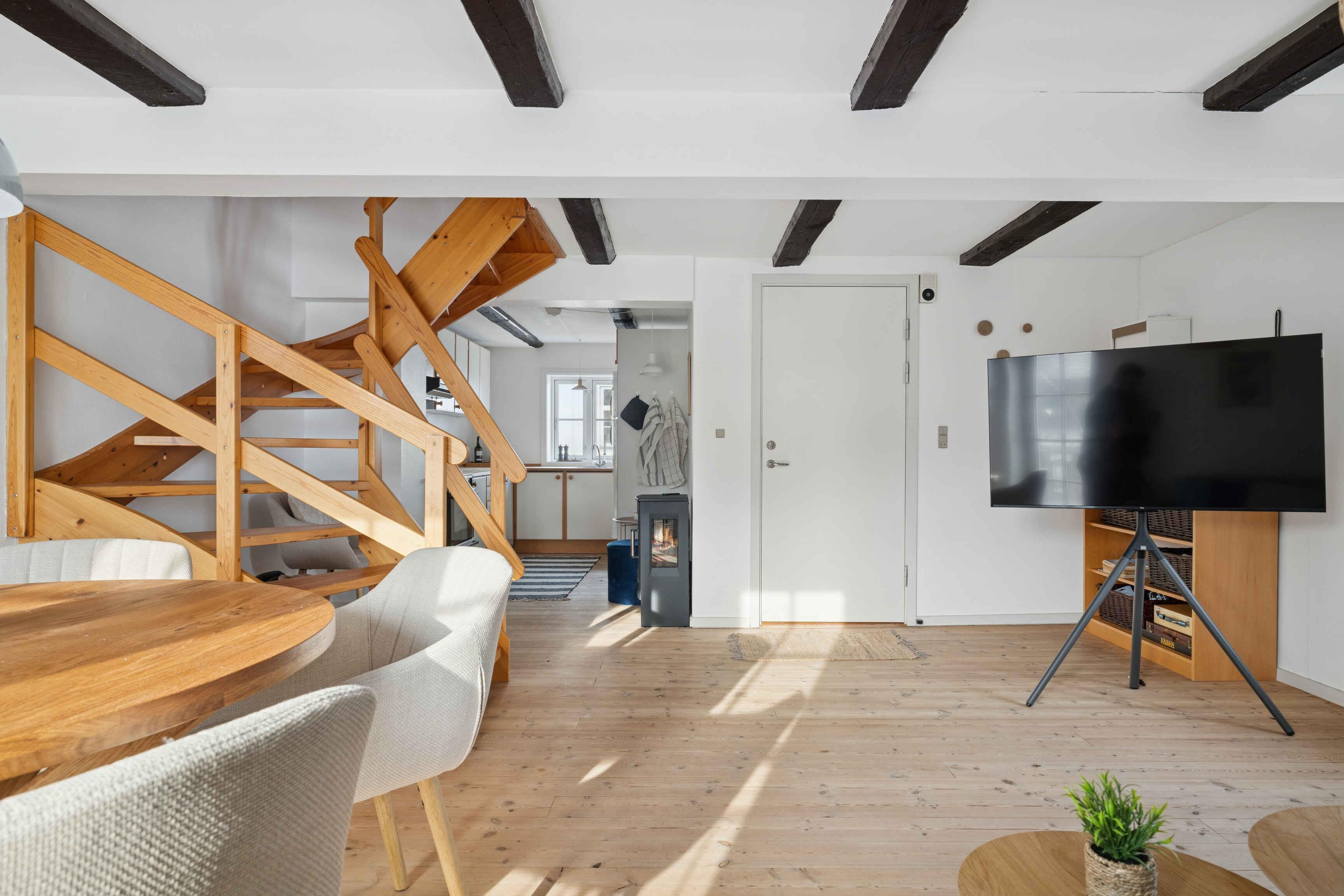 Feriebolig med unik beliggenhed ved vandet og lige op til Knuthenborg Safaripark. Nyd havudsigt, rolig atmosfære og kort afstand til natur, strand og oplevelser – ideelt til både familier og par, der vil tæt på kyst og eventyr. Ferieboligen i Det Gule Pakhus ligger i hjertet af Bandholm – lige over for det ikoniske Bandholm Badehotel, Boligen ligger på 2. 3. og 4. sal med et lyst og rummeligt opholdsrum med udsigt til havnen og i åben forbindelse til køkken. Det runde spisebord og sofagruppe har god plads op til 6 personer - Smart-tv med Netflix. Køkkenet er fuldt fungerende køkken med komfur, emhætte, opvaskemaskine, køle/frys. 3. sal har 2 hyggelige værelser med hver to senge og begge værelser med vandudsigt og plads til at sidde og nyde udsigten. Desuden stort rummeligt badeværelse med brus. 4. sal i åben forbindelse til loftsværelse med den flotteste udsigt og 2 sovepladser, der kan være to enkeltsenge eller dobbeltseng. En afslappet atmosfære, der gør den perfekt til både par, familier og vennegrupper. I denne feriebolig kan familien og vennerne være sammen, men også trække sig tilbage på værelserne, der på grund af de forskellige etager giver mulighed for lidt privatliv. Adgang til have med mulighed for at grille, spille bold eller bare slappe af, hvis ikke stranden trækker. Lejligheden ligger lige overfor Bandholm Badehotel , her kan købes morgenmad, dejlige frokoster og gourmetmiddage i smukke omgivelser. Her er også mulighed for at tilkøbe spa- og saunafaciliteter, så opholdet kan blive ekstra afslappende. (Husk at booke) Mulighed for let indkøb i Bandholm og cafeudsalg. Butikker og restauranter m.v. i Maribo, der ligger 10 min væk i bil eller bus. Kun få skridt fra lejligheden finder man den historiske badeanstalt på molen med omklædning og rutsjebane. Havn , strand og ishus, lige uden for døren. Alt dette gør området perfekt til både børnefamilier og voksne, der elsker havet og den friske kystluft. Beliggenheden er samtidig ideel for oplevelseslystne gæster: Knuthenborg Safaripark ligger lige rundt om hjørnet, og den smukke natur ved Dodekalitten er kun en kort køretur væk. Maribo, en hyggelig købstad med domkirke, caféer og små butikker, ligger tæt på, og området byder desuden på attraktioner som Krokodille Zoo, Middelaldercentret og flere naturskønne vandreruter. Fra Kragenæs havn kan der sejles til de 3 øer Fejø, Femø og Askø, som bl.a. byder på gastronomiske oplevelser. Fra Rødbyhavn kan der tages på shopping tur til Tyskland (Rødby - Puttgarden - Tur/Retur) ved at købe en billig 1-dagsbillet via Scandlines. Kort info om Knuthenborg Safaripark: Parken er i dag Nordeuropas største safaripark. Safariparken huser over 1000 dyr Dyrene lever i områder, der efterligner deres naturlige levesteder. Dinosaurskoven – en 30.000 m² stor skov med over 20 livagtige dinosaurmodeller og fossiler. Evolutionsmuseet udstiller ægte skeletter. Limpopoland er parkens store legeområde med Danmarks største natur- og vandlegeplads. Maribo museumsbane kører med veterantog i sommerperioden mellem Maribo og Bandholm. Se også Bandholm togstation, der har været med i flere spillefilm. Der er mulighed for at leje cykler i Bandholm på havnen og bussen kører mellem Maribo, Bandholm og Kragenæs Havn (Bus nr. 725). Fra Kragenæs Havn - 20 km fra Bandholm, kan man sejle til Æbleøerne, der består af Fejø, Femø og Askø-Lilleø. Om sommeren kan du være heldig at se legende marsvin, på sejlturen og måske sæler i havnen. Æbleøerne har gode vilkår for dyrkning af æbler. På Fejø og Askø-Lilleø finder du store æbleplantager – på Femø mindre æblehaver. Her er vejboder med udsalg af frugt og grønt , hyggelige landsbyer, gårdbutikker og små spisesteder, cafeer og lokal kroer samt dejlig natur. Der er busforbindelser fra Bandholm til Kragenæs og mulighed for at leje cykler til at opleve øerne. Andre oplevelser: - Lalandia (Rødby) 25 km: Vandland, Familie aktiviteter, legeland - Østergård Vinmageri (Stokkemarke) 10 km: Lokal vinmager - Maribo Sø Golfklub (Maribo) 11 km: Golf - Trolden Frie Vilje (Maribo) 8 km: En stor trold - Frilandsmuseet De gamle Huse (Maribo) 8 km: Frilandsmuseum - Legejunglen Falster (Nykøbing Falster) 32 km: Legeland - Skovkærgaard Alpakas (Nykøbing Falster) 33 km: Dyr, Alpakas - Pangea Park Falster (Nykøbing Falster) 35 km: Dyre Zoo - Museum Obscurum (Nykøbing Falster) 35 km: Museum (Mærkværdige fund) - Middelaldercentret (Nykøbing Falster) 36 km: Middelalder Museum - Fuglsang Kunstmuseum (Nykøbing Falster) 33 km: Kunstmuseum - Krokodille Zoo (Falster) 40 km: Krokodille Zoo Alt i alt får gæster en feriebolig med en sjælden kombination af havudsigt, ro, kultur, natur og nogle af Lollands største attraktioner samlet inden for få minutter. Det er et sted, hvor både afslapning og eventyr er lige uden for døren.