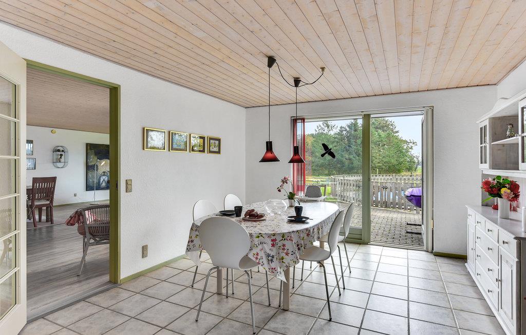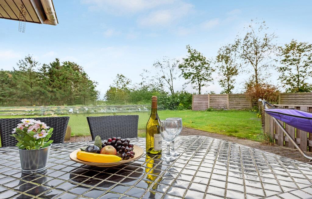 Dette familievenlige feriehus ligger på en stor, ugeneret grund, hvor I får den perfekte oase. Den rummelige stue med udsigt til terrassen og den grønne have har en indbydende atmosfære. Det veludstyrede køkken fører direkte til terrassen, hvor I kan nyde dagens måltider under åben himmel. Glæd jer til en landidyl, for I kan se frem til, at fårene med deres lam jævnligt besøger baghaven.