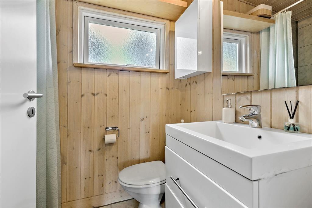 Du kommer her til et af de sjældnere strandhuse som ligger 150 meter fra havet. Huset har 2 værelser, køkken i åben forbindelse med stuen, samt naturligvis et dejligt badeværelse med gulvvarme. I stuen er der også fuld udsigt, så selv hvis vejret ikke er optimalt, kan du sidde indenfor og spille et spil samtidig med at udsigten nydes. Her er alt det der skal til for at holde en dejligt, rolig og afslappende ferie, det er bare med at komme afsted.