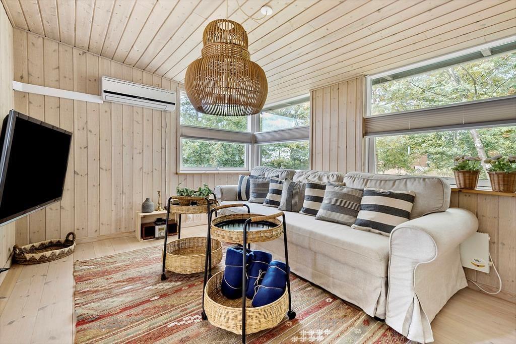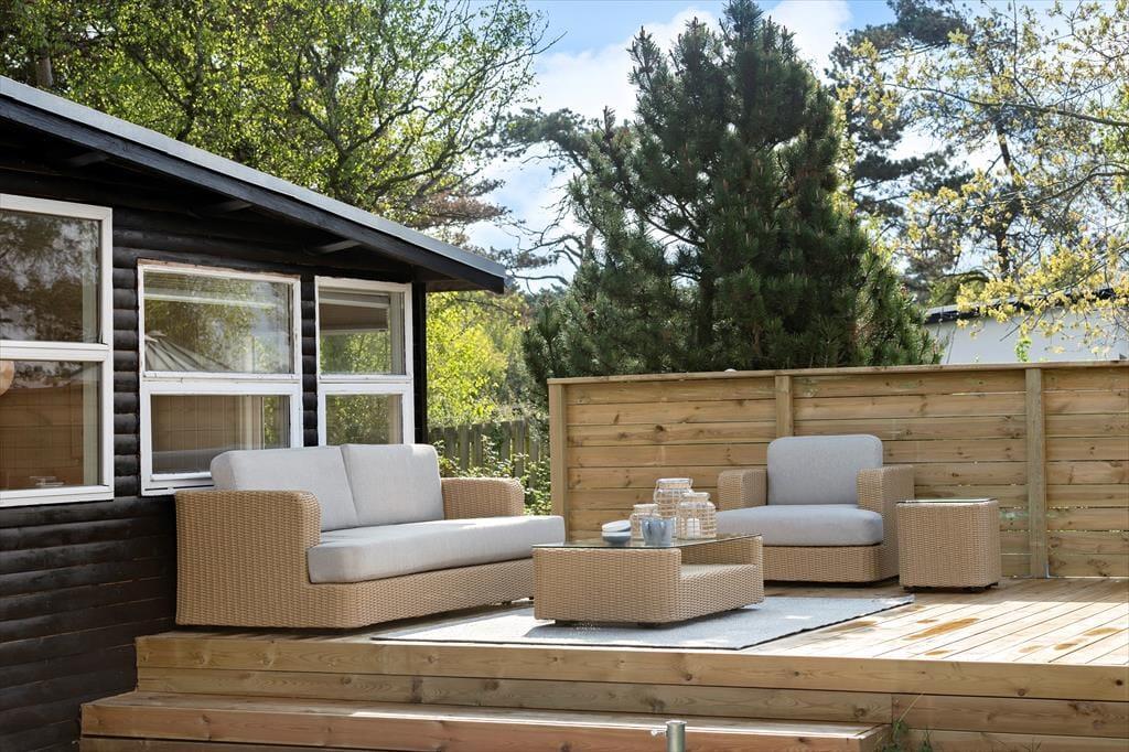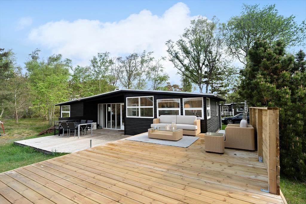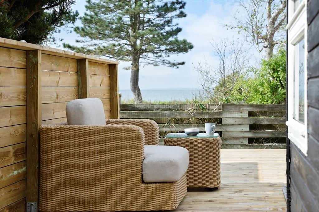 Huset er beliggende på en dejlig stor naturgrund med træterrasse og fantastisk havudsigt. Velegnet til leg og udendørsaktiviteter. Til huset hører skønne træterrasser med havemøbler, liggestole og grill. Hvis du er tidligt oppe, kan du opleve naturens egne dyr som går rundt og græsser. Havet kan du også høre fra terrassen så du skal bare slå dig ned og nyde det hele i fulde drag. Du kan også tage en morgendukkert på 2 minutter er du nede ved vandet og kan tage et opfriskende bad. Solen er på husets vand siden hele dagen, når den er fremme forstås. De øvrige dage er området egnet til lange gåture.