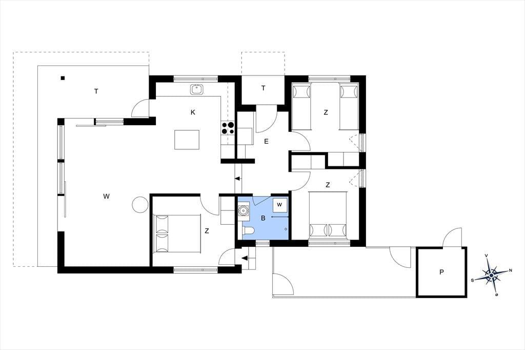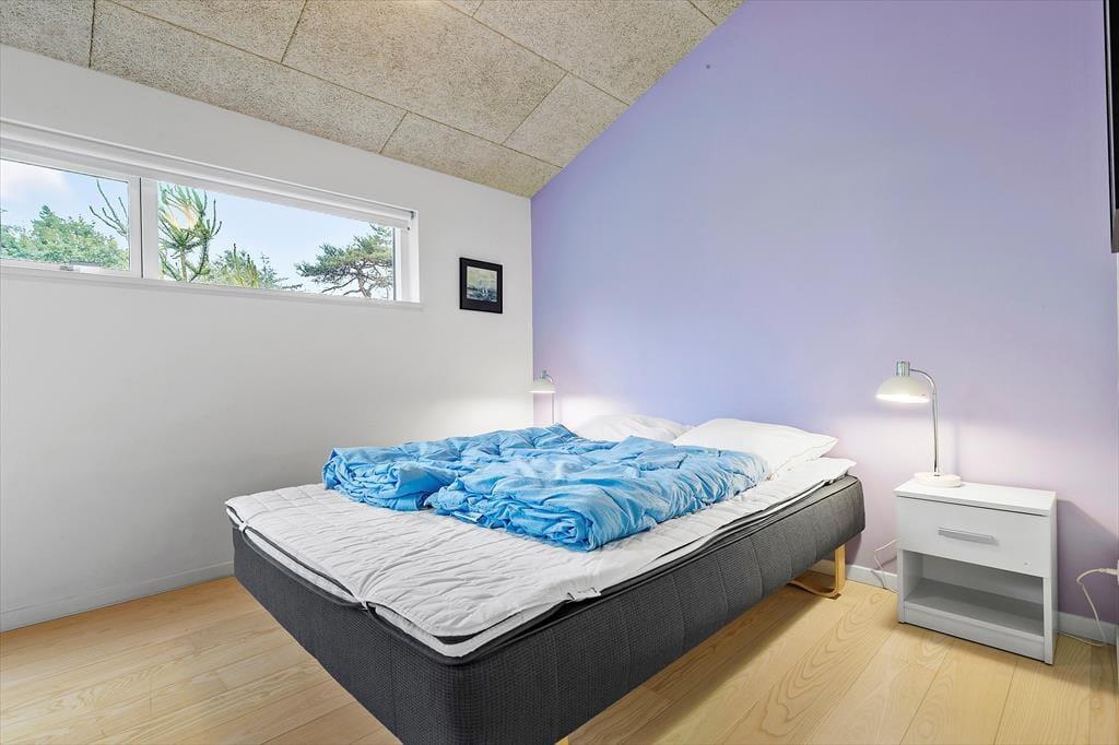 Du kommer her til et af de sjældnere strandhuse som ligger 75 meter fra havet. Huset har 3 værelser, køkken i åben forbindelse med stuen, samt naturligvis et dejligt badeværelse med gulvvarme. I stuen er der også fuld udsigt, så selv hvis vejret ikke er optimalt, kan du sidde indenfor og spille et spil samtidig med at udsigten nydes. Alle kan også være med når der skal laves mad, fordi det ligger i samme rum.