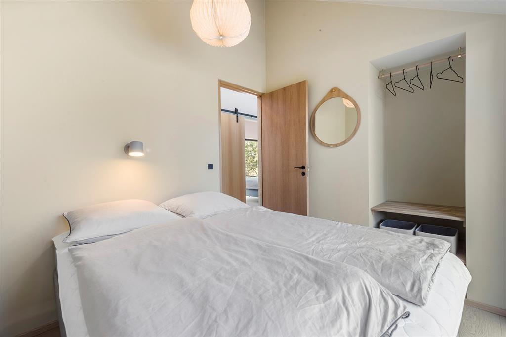 Huset har tre soveværelser med dobbeltsenge og plads til i alt seks voksne og ét barn. På 1. salen venter en hyggelig krog med panoramaudsigt – perfekt til afslapning med en god bog. Badeværelset er rummeligt og indeholder bruseniche, vaskemaskine og tørretumbler, samt adgang til endnu en sydvendt terrasse, hvor du finder en udendørs bruser – ideel til et frisk bad efter en tur på stranden.