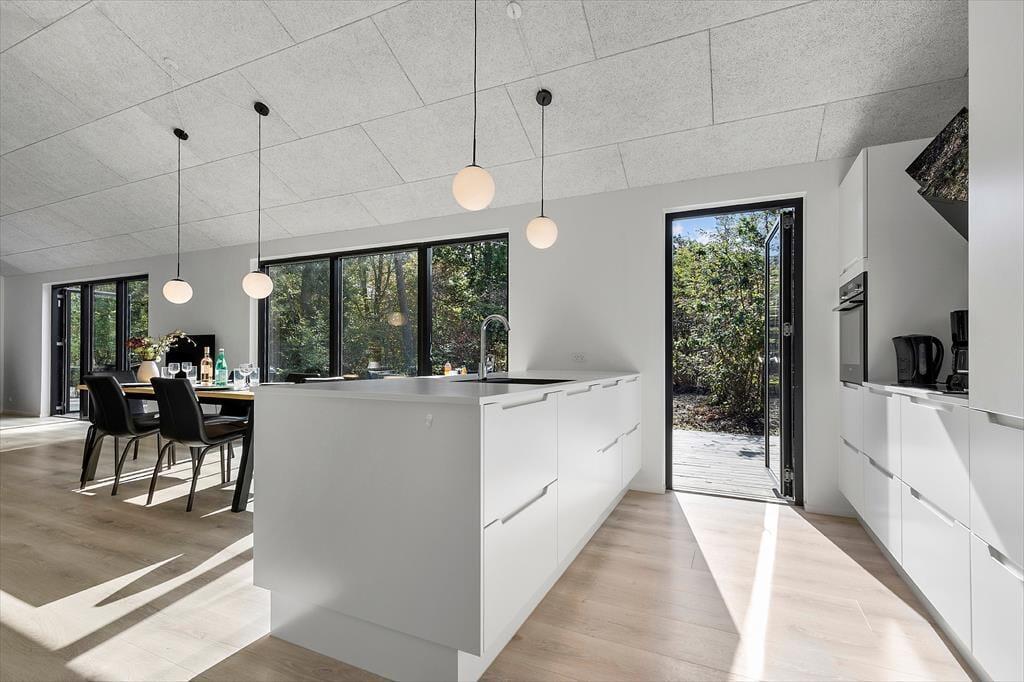 Velkommen til dit dejlige sommerhus på Metholmvej 18 — et moderne og komfortabelt fristed opført i 2022 og på hele 127 m² med plads til 8 personer. Du træder ind i et lyst og indbydende hjem, der emmer af nybyggerstil og hyggelig atmosfære. Med fire soveværelser og to badeværelser er der rigeligt med plads til både familie og venner. Det åbne køkken-alrum er husets naturlige samlingspunkt, hvor du kan lave mad, spille spil og slappe af i godt selskab. Alt er indrettet med tanke på din komfort — fra den moderne stil til den funktionelle planløsning.
