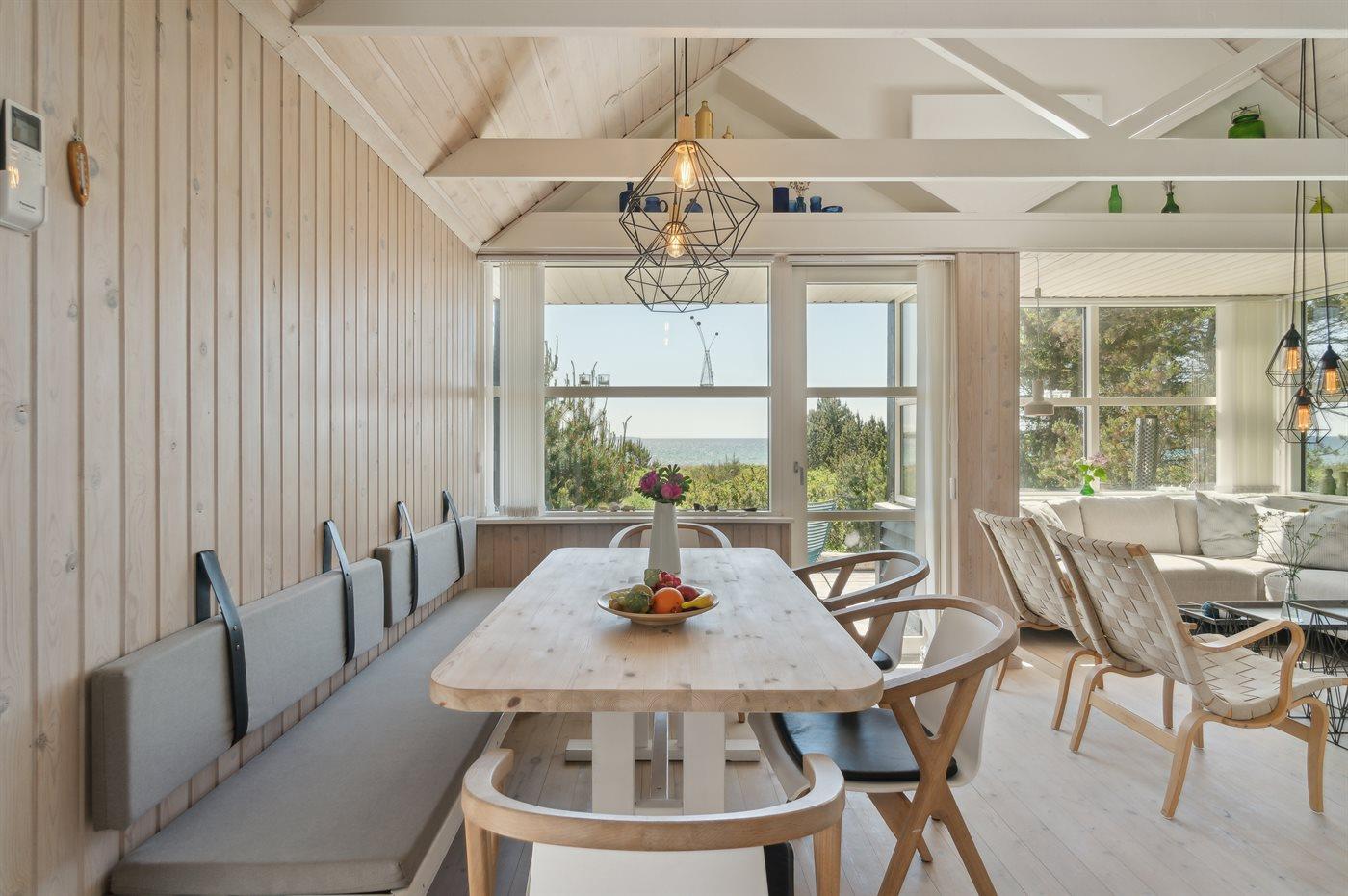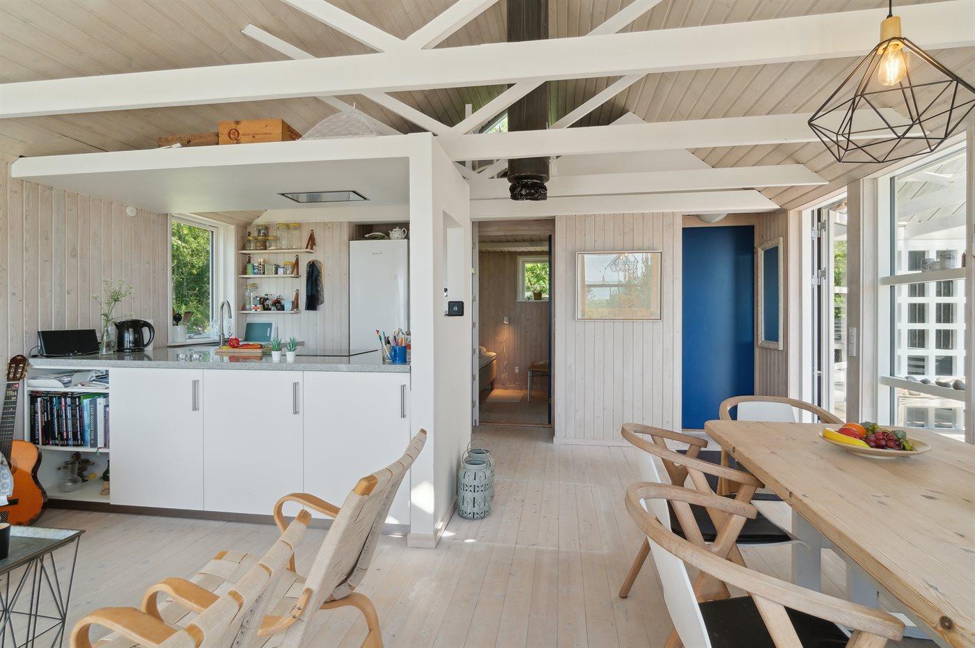 Dette vidunderlige 6-personers sommerhus er beliggende blot 25 meter fra vandkanten og byder på en fantastisk oplevelse ved havet. Huset skiller sig ud med sit dejlige lukkede terrassemiljø, der er omgivet af hovedhuset og annekset. Her kan du nyde privatlivets fred og samtidig have et ideelt sted at slappe af og nyde det omkringliggende miljø.