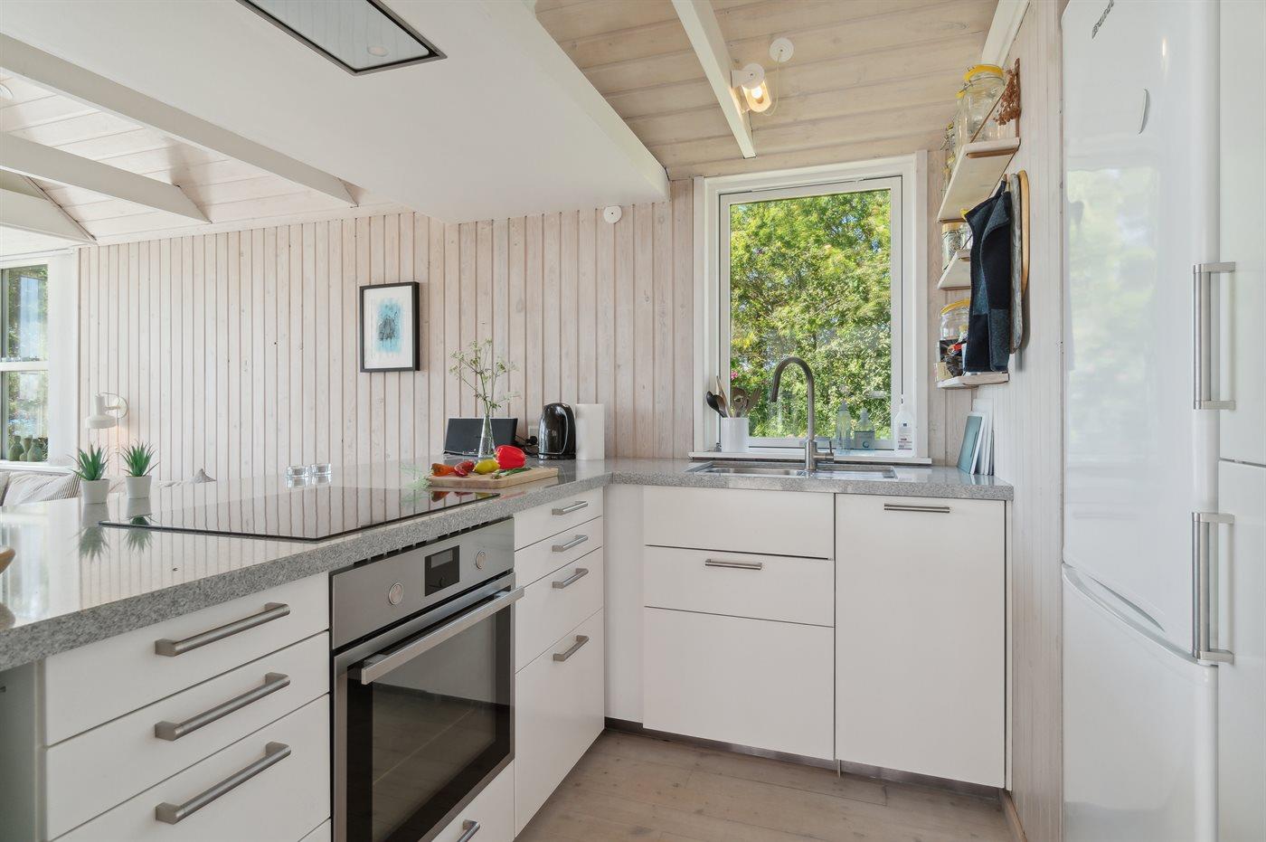Køkkenet er udstyret med 1 køleskab. Der er 4 induktionskogeplader, varmluftovn samt opvaskemaskine.