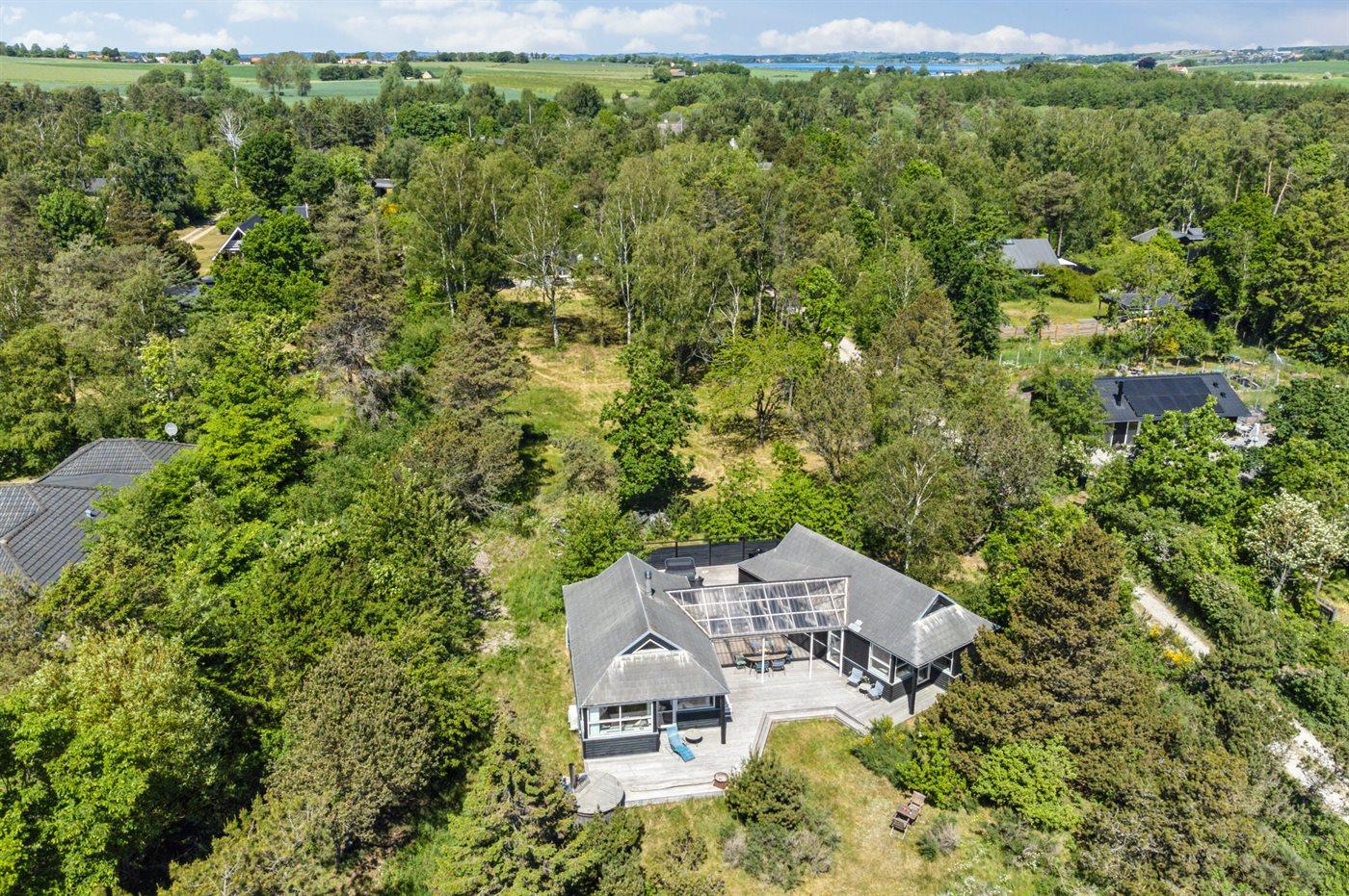 Ferieboligen er beliggende på en 3000 m² stor naturgrund. Der er 25 m til havet. Nærmeste forretning er beliggende i en afstand af 2000 m. Til ferieboligen hører 140 m² terrasseareal. Desuden er der 20 m² overdækket terrasse. Heraf i alt 70 m² lukket terrasse. Udendørs bruser. Grill til rådighed. Der er installeret stik til opladning af elbil. Type 2 stik. Med 11 kW ladeeffekt. Parkering ved ferieboligen.