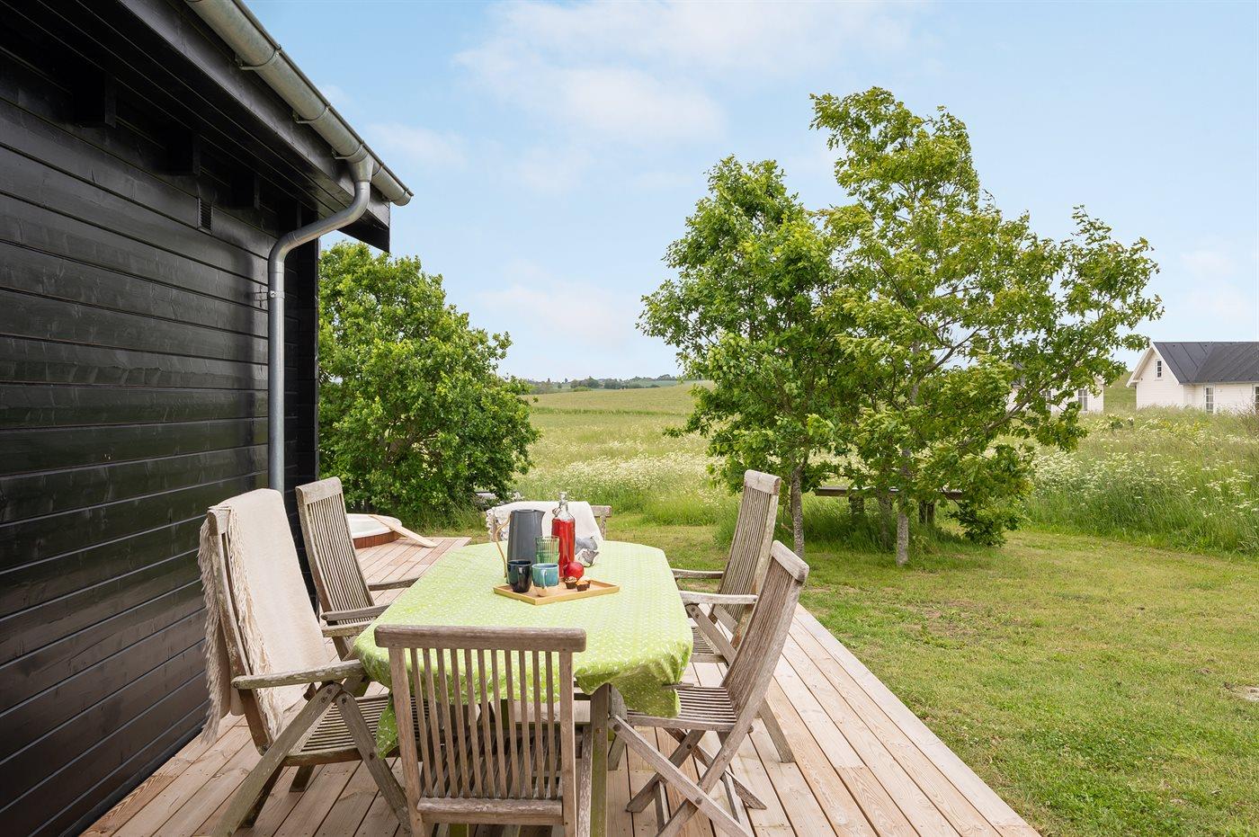 Ferieboligen er beliggende på en 1650 m² stor naturgrund. Der er 200 m til havet. Nærmeste forretning er beliggende i en afstand af 4000 m. Der er en golfbane i en afstand af 22000 m. Til ferieboligen hører åbent terrasseareal. Desuden er der overdækket terrasse. Bålsted. Grill til rådighed. Parkering ved ferieboligen.